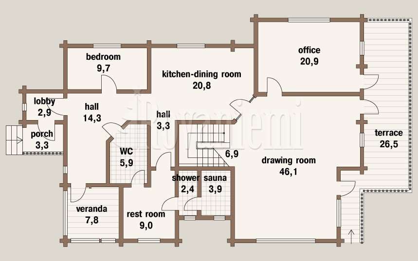 Viola is een houten woning gebouwd door Aito Lapland, een fabrikant van houten huizen in Finland. Deze blokhut heeft vier slaapkamers en biedt 314,7 m² woonruimte verdeeld over twee verdiepingen.