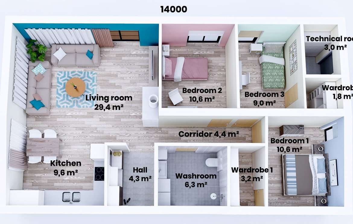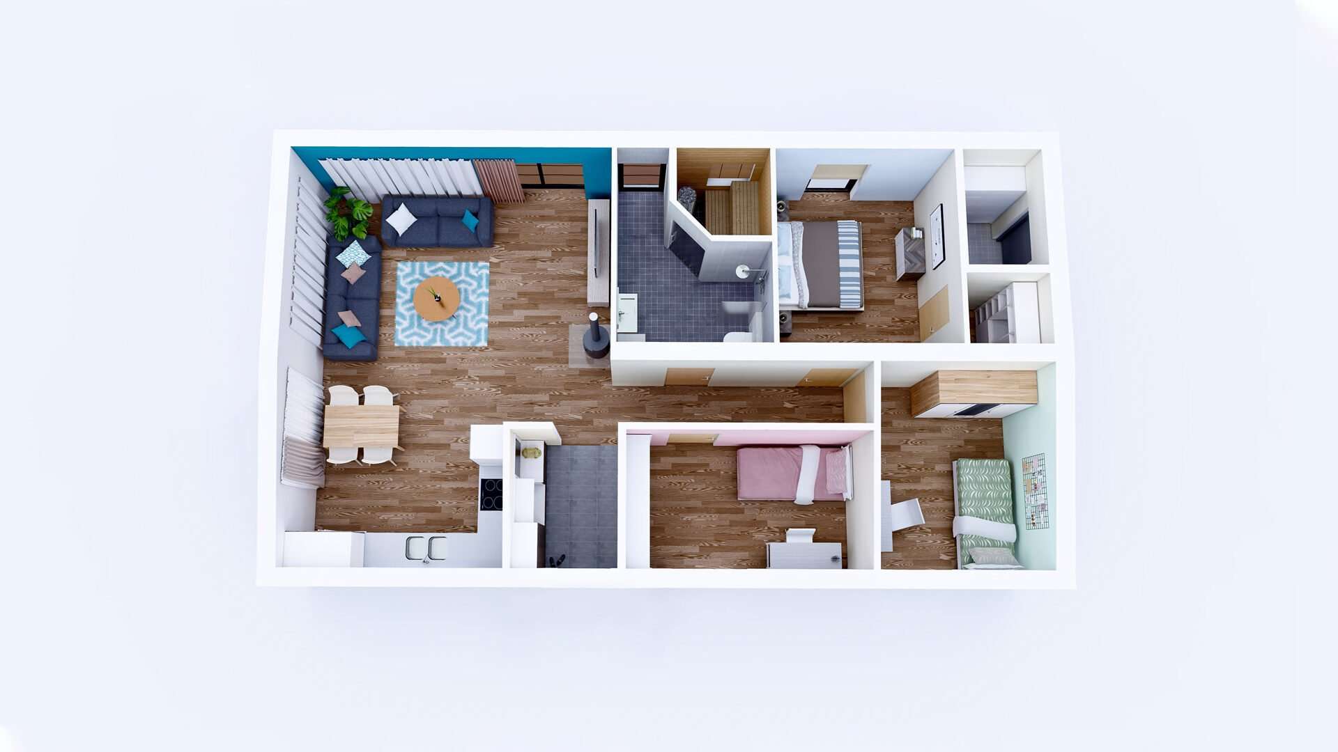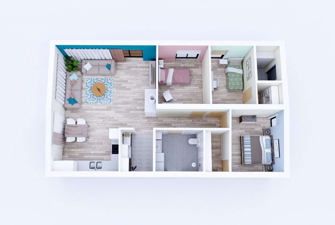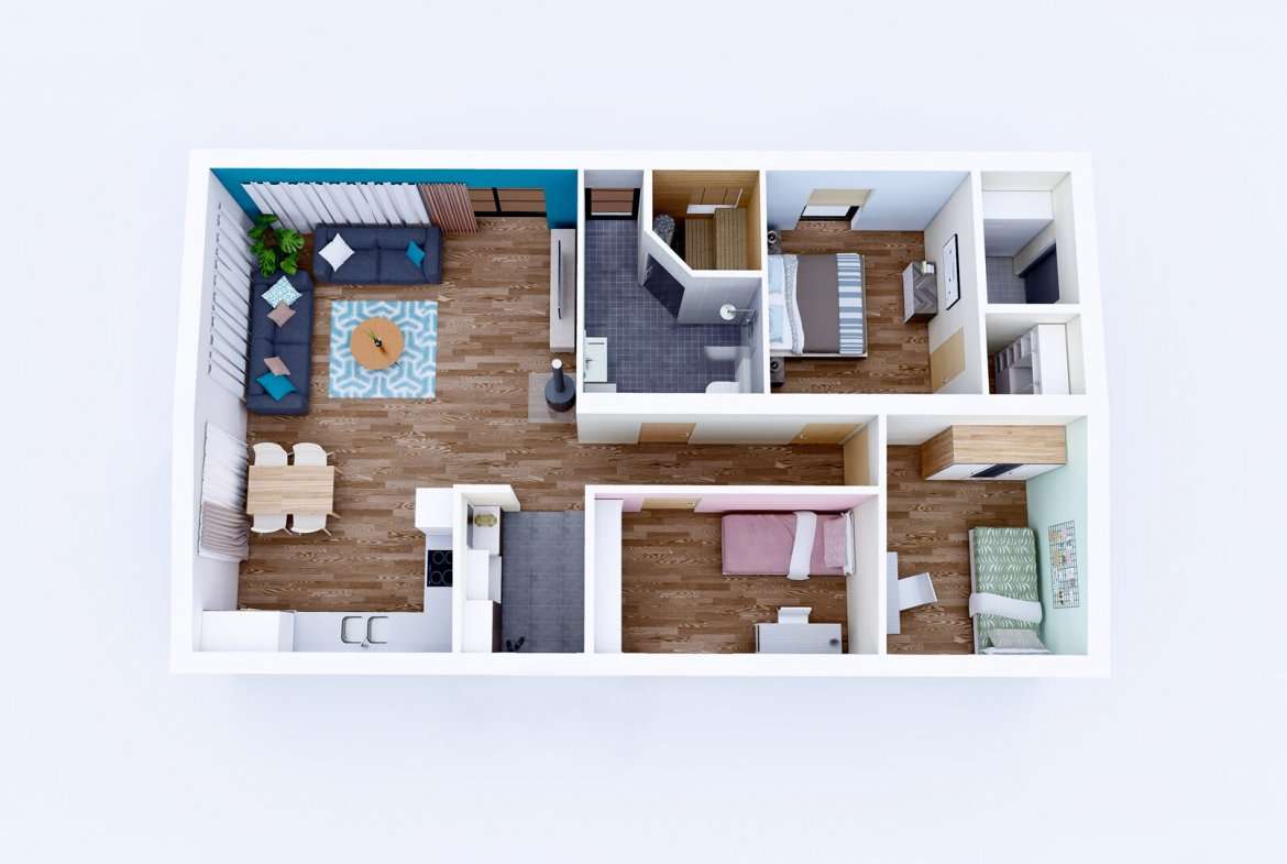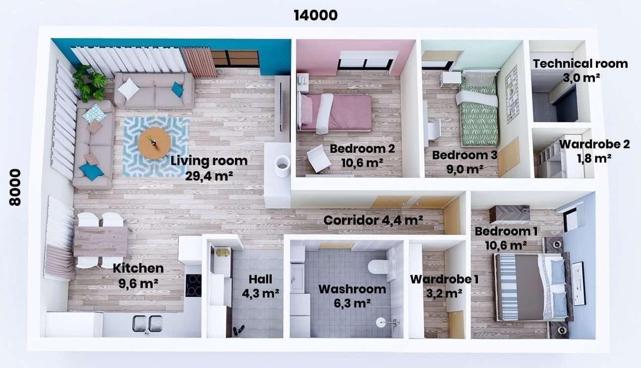 Stella 1-112 is een modulaire woning gebouwd door Akso-Haus, een prefab fabrikant gevestigd in Estland. Deze modulaire woning biedt 92,2 m² woonruimte met drie slaapkamers en een badkamer.