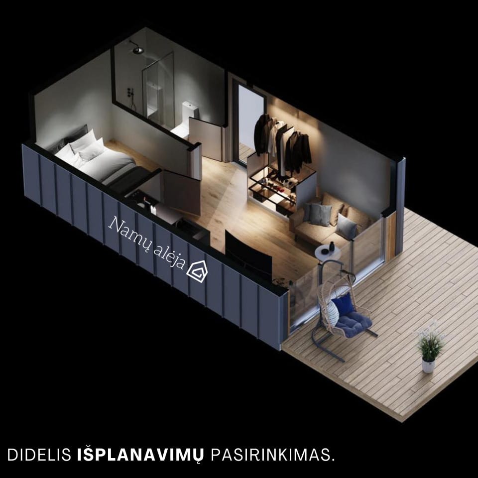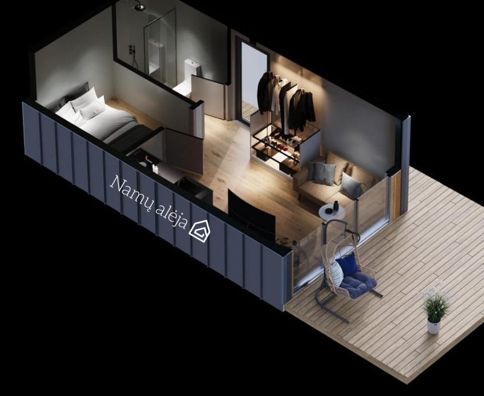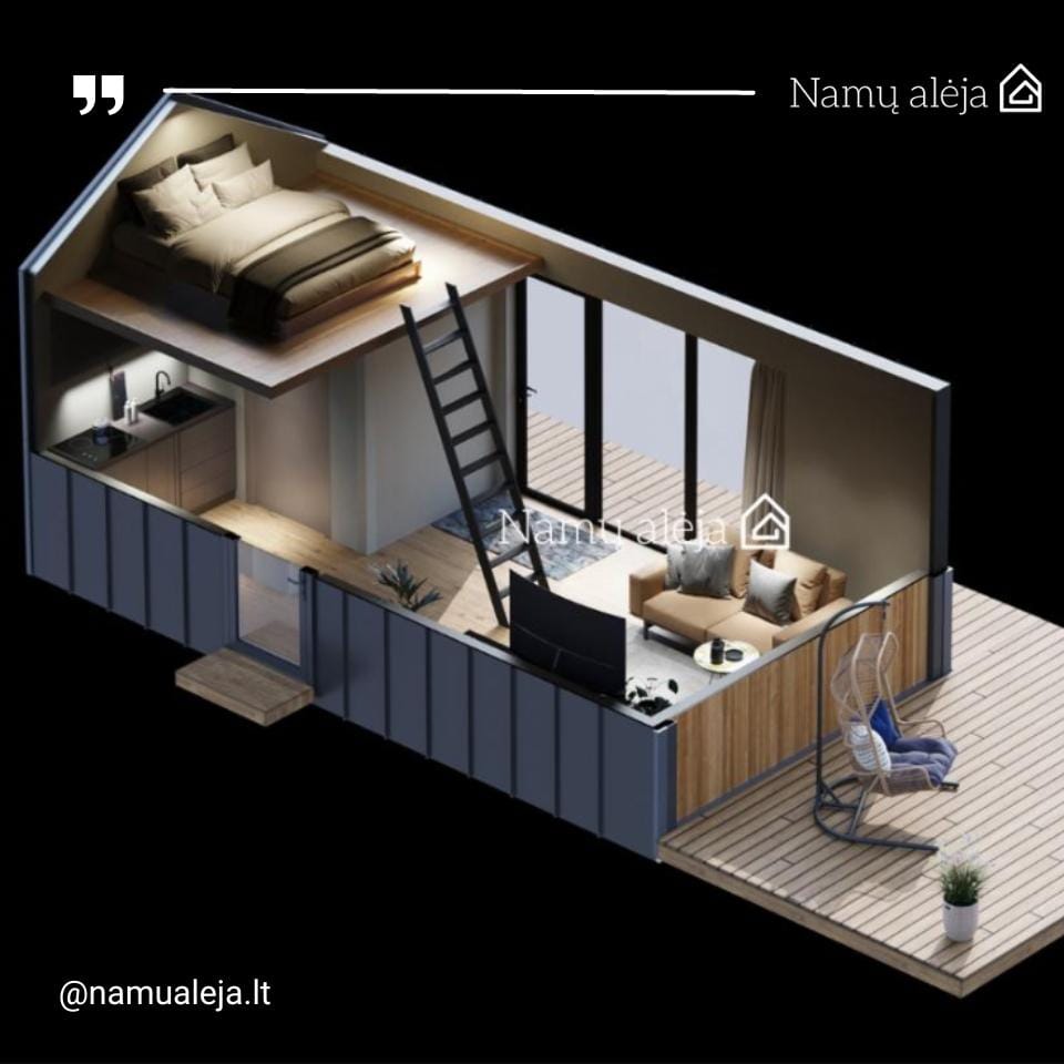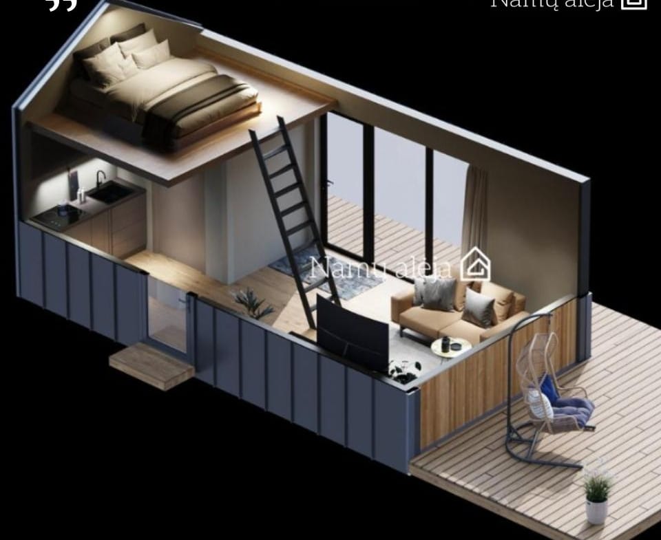 Tutis is een modulaire hut gebouwd door Namų Alėja, een fabrikant uit Litouwen. Deze hut biedt 29m2 woonruimte en is geschikt voor 2 personen.