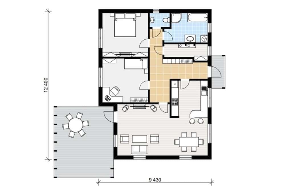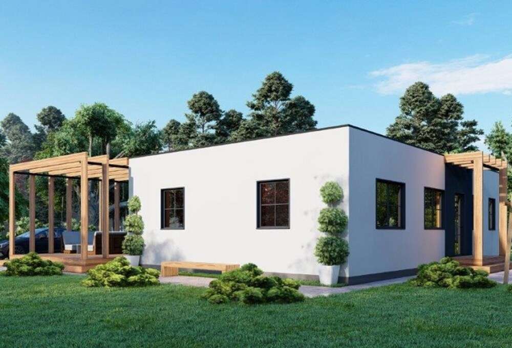 Prefabricated House 102 is een paneelwoning gebouwd door Norges Hus, een prefab fabrikant gevestigd in Estland. Deze paneelwoning biedt 102 m² woonruimte met twee slaapkamers en een badkamer.