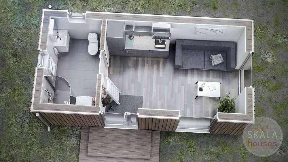 Linda is een modulaire hut gebouwd door Skala Houses, een prefab Fabrikant gevestigd in Letland. Deze prefab woning biedt 25 m² woonruimte, die geschikt is voor twee personen.