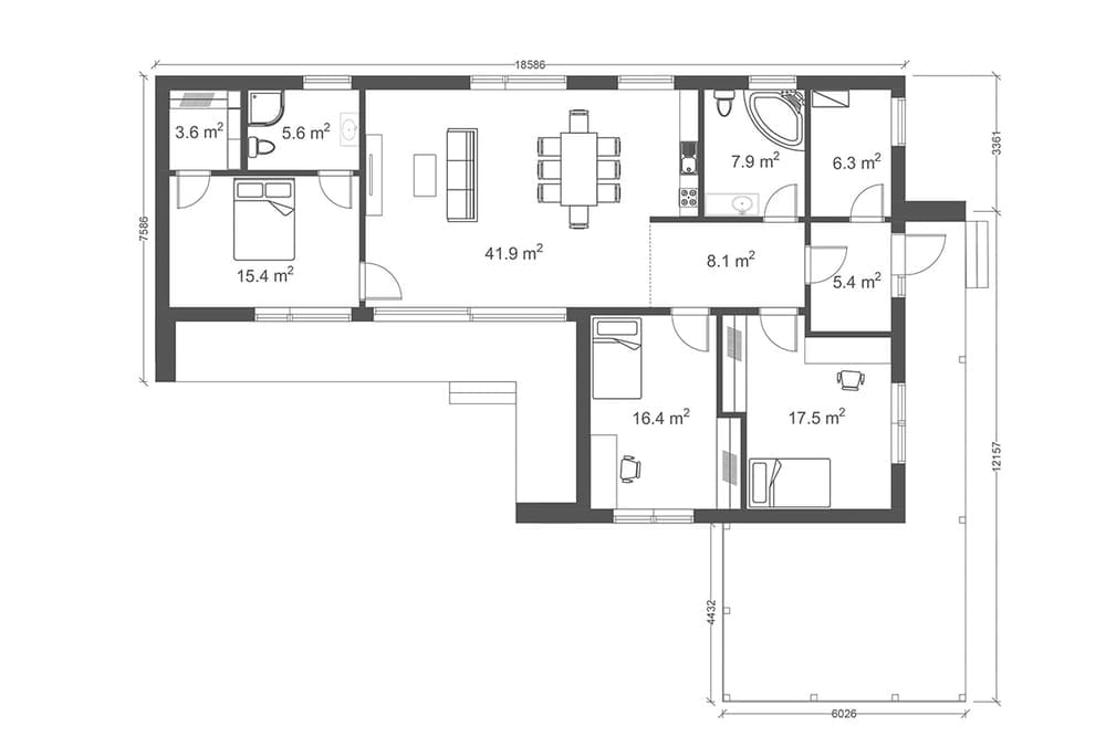 X-128 is een geprefabriceerd houten huis gebouwd door Vitbuve, een prefab Fabrikant gevestigd in Letland. Dit prefab huis biedt 128,1 m2 woonruimte, met 3 slaapkamers en 2 badkamers.