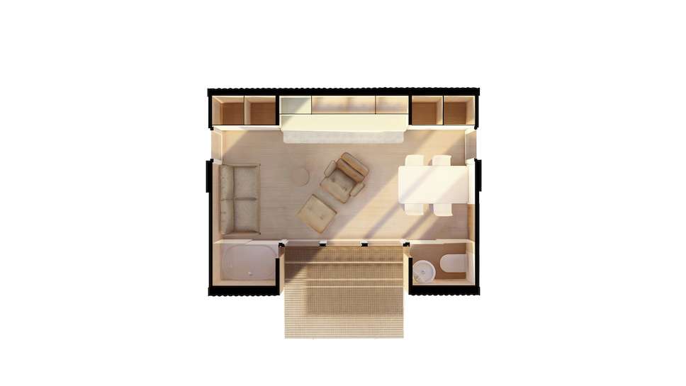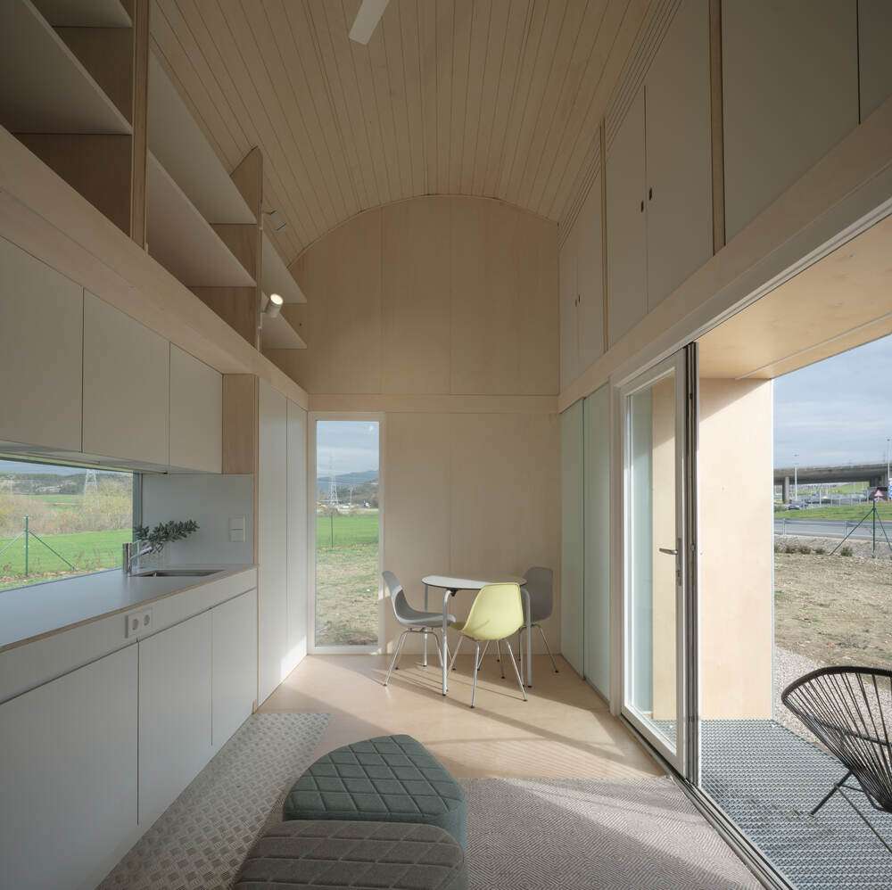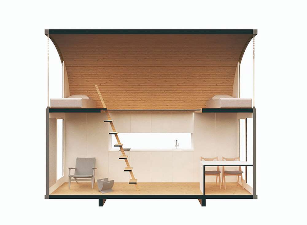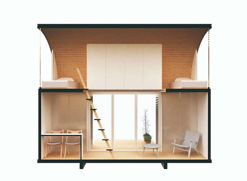 mohma Compact is een hut gebouwd door Woodville, een prefab Fabrikant gevestigd in Spanje. Deze hut biedt 28,5 m² woonruimte verdeeld over twee verdiepingen, en is geschikt voor maximaal vier personen.