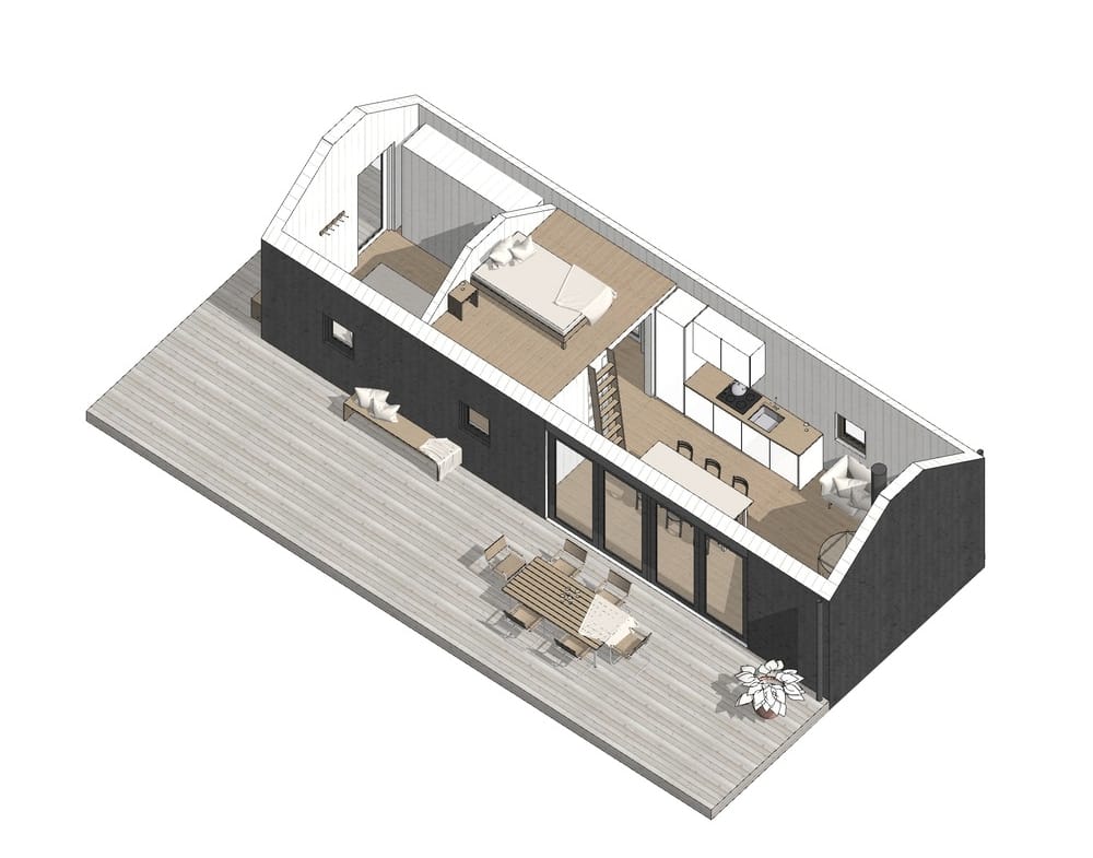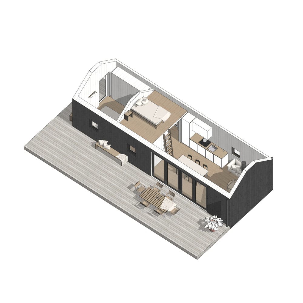 Atelje 50 er et modulhus bygget av Ateljé Houses, en prefabprodusent med base i Sverige. Denne hytta har et boareal på 50 m2, med ett soverom og ett bad.