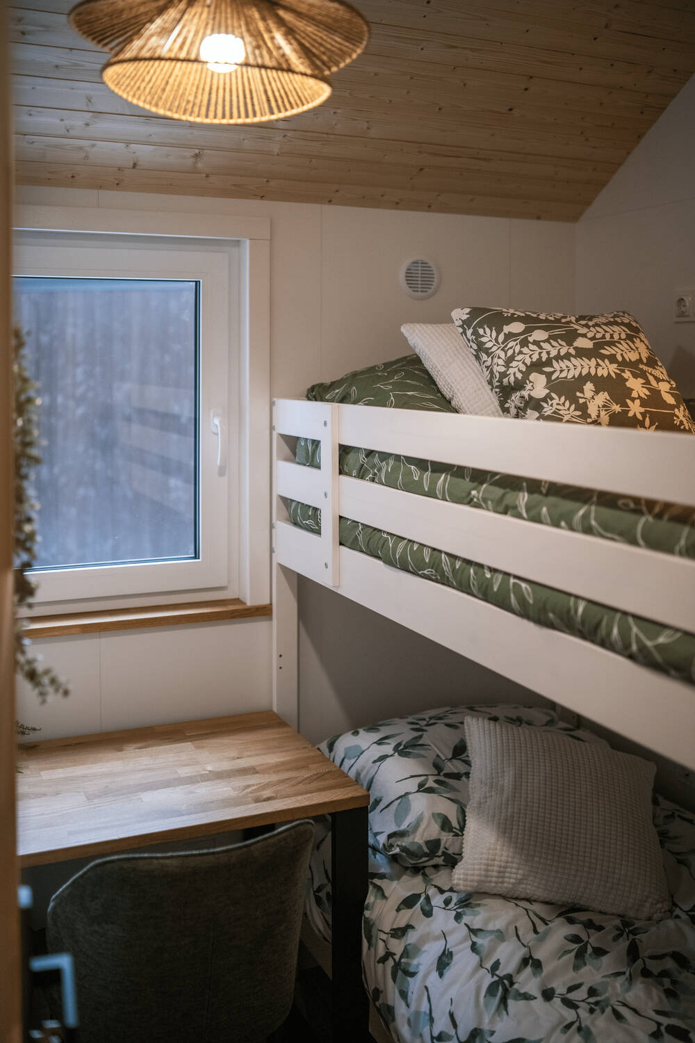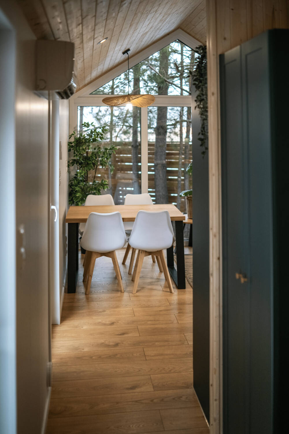 Sky er et lite hus bygget av Aurora Company, en produsent med base i Polen. Dette lille huset har et boareal på 31 m² med 2 soverom og 1 bad.