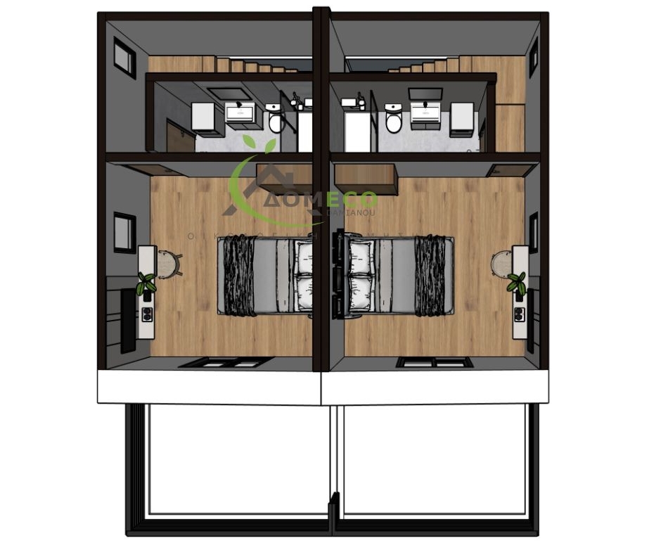 EcoDuplex House er et modulhus bygget av Domeco, en prefabprodusent med base i Hellas. Dette modulhuset har et boareal på 154 m², med 4 soverom og 4 bad.