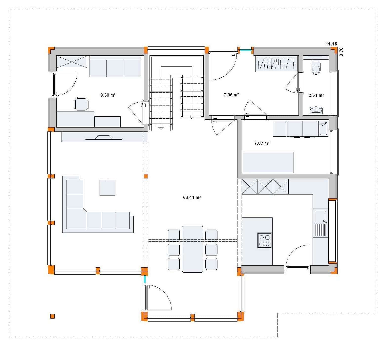Vita Nova Classic 155 V1 er et elementhus bygget av Kager, en ferdighusprodusent med base i Slovenia. Dette panelbygde huset har 155 m² boareal fordelt på to etasjer, tre soverom og to bad.