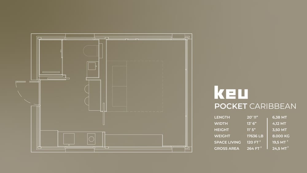 Keu Little er et modulhus bygget av Keu, en prefabprodusent med base i Spania. Dette ferdighuset har et boareal på 24 m2, med 1 soverom og 1 bad.