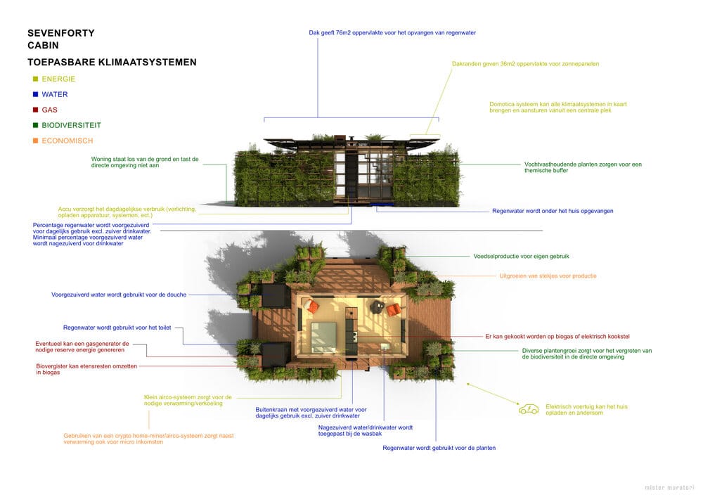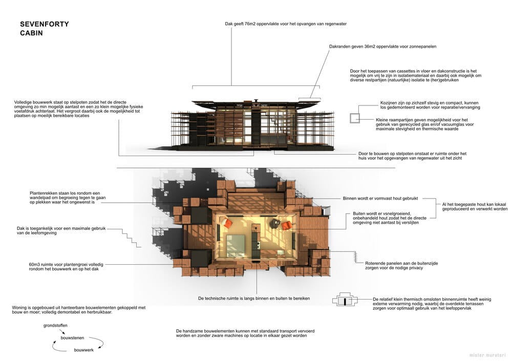 740 Cabin er et modulhus bygget av Mister Muratori, en prefabprodusent med base i Nederland. Dette ferdighuset har et boareal på 24,6 m2, med 1 soverom og 1 bad.