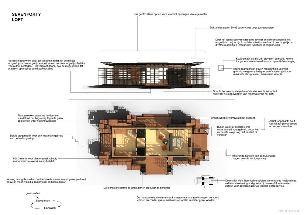 740 Loft er et ferdighus bygget av Mister Muratori, en ferdighusprodusent med base i Nederland. Dette ferdighuset har 49,3 m2 boareal, med 1 soverom og 1 bad.
