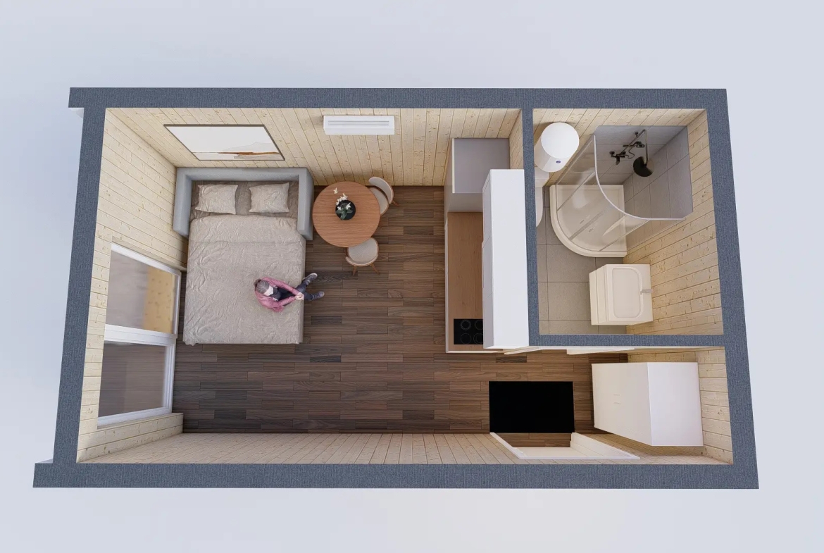 MOD Tiny 21 er et ferdighus bygget av ModHouse, en produsent av ferdighus med base i Litauen. Dette ferdighuset har et boareal på 18 m², med plass til 2 personer.