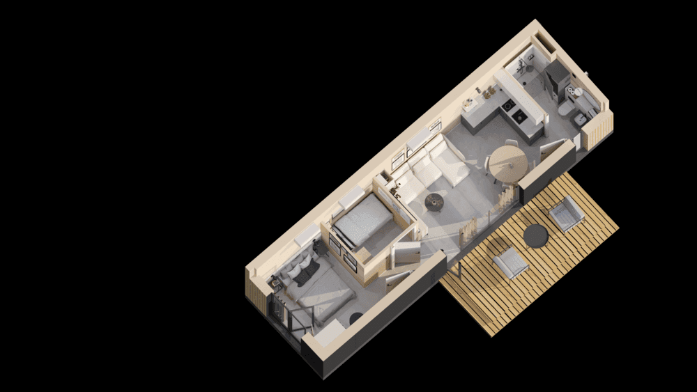 Bris XL er et modulhus bygget av MOMO Development, en prefabprodusent med base i Sverige. Dette ferdighuset har et boareal på 35 m², med 2 soverom og 1 bad.