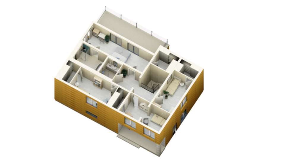 MOMO Stor er et toetasjes modulhus bygget av MOMO Development, en prefabprodusent med base i Sverige. Dette ferdighuset har et boareal på 228 m², med 5 soverom og 3 bad.