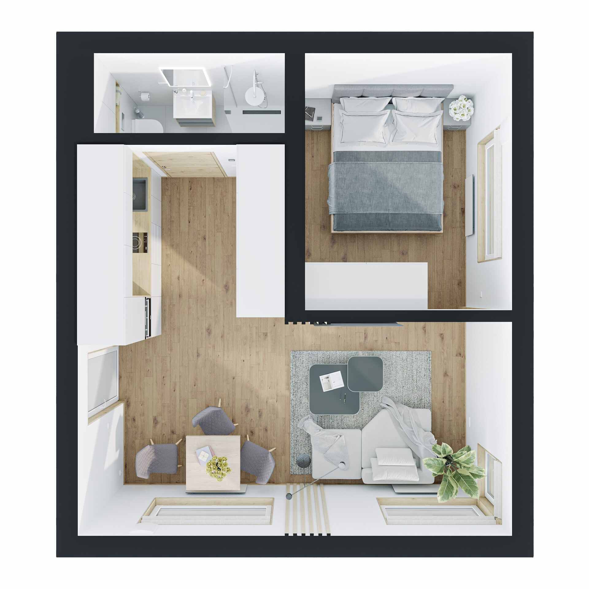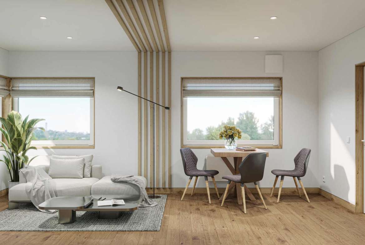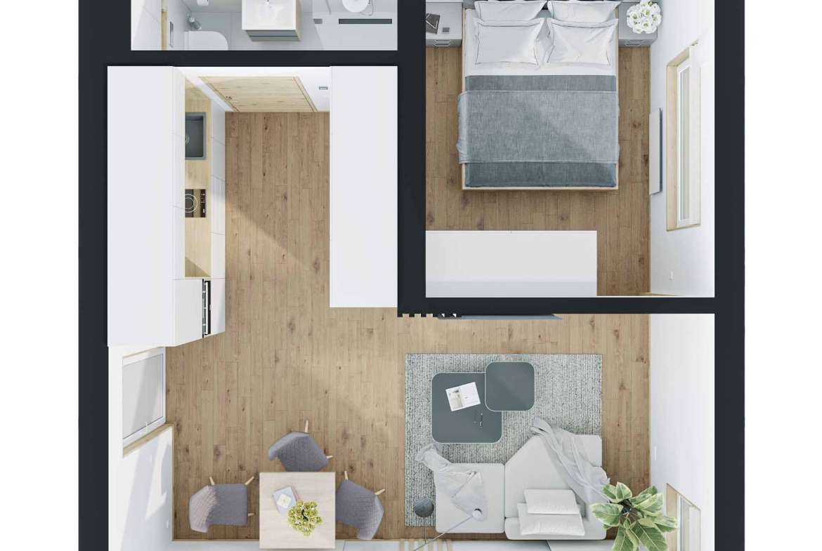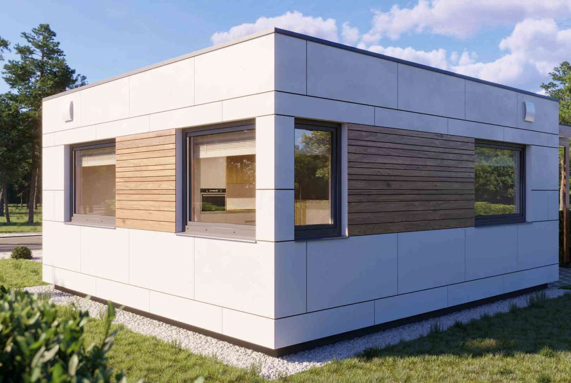 DUOMOD 39 V1 er et modulhus bygget av NOVA TEQ, en prefabprodusent med base i Ukraina. Dette modulhuset har et boareal på 32 m², med ett soverom og ett bad.