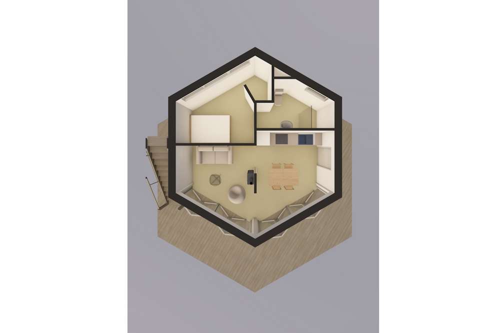 Bee House er en hytte bygget av Šuuna, en ferdighusprodusent med base i Latvia. Denne hytta har 36 m2 boareal, ett soverom og ett bad.