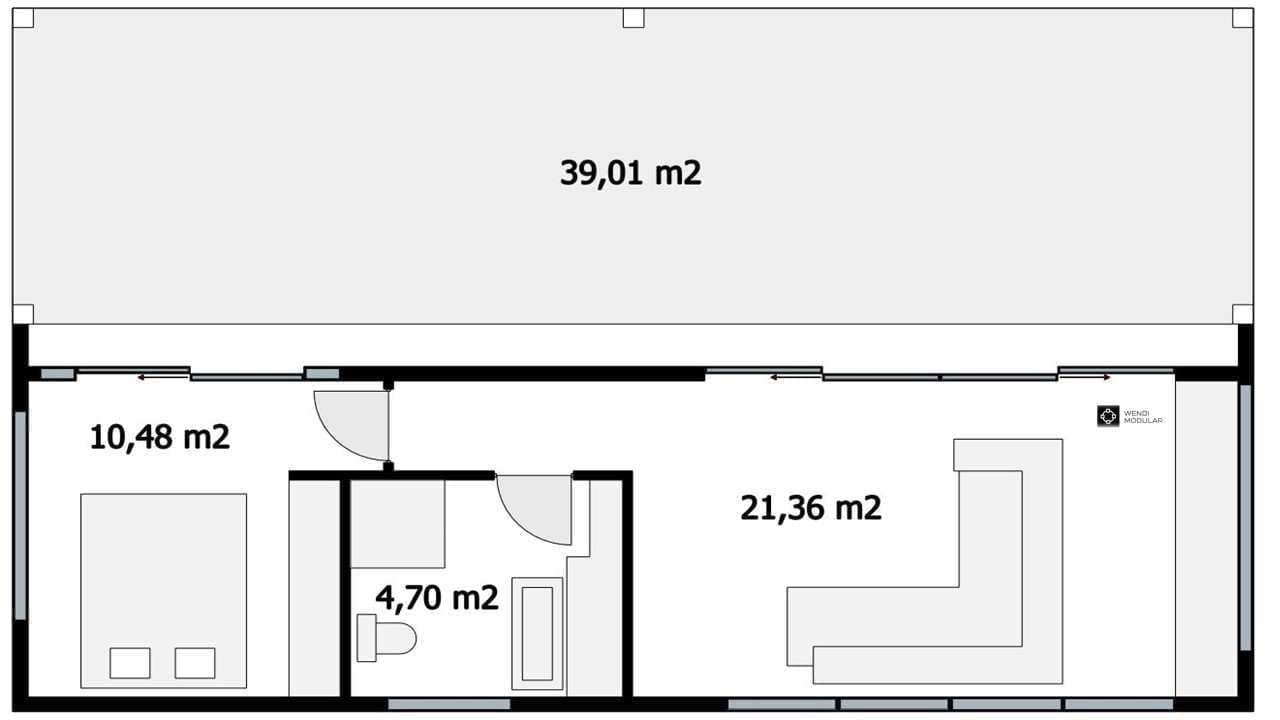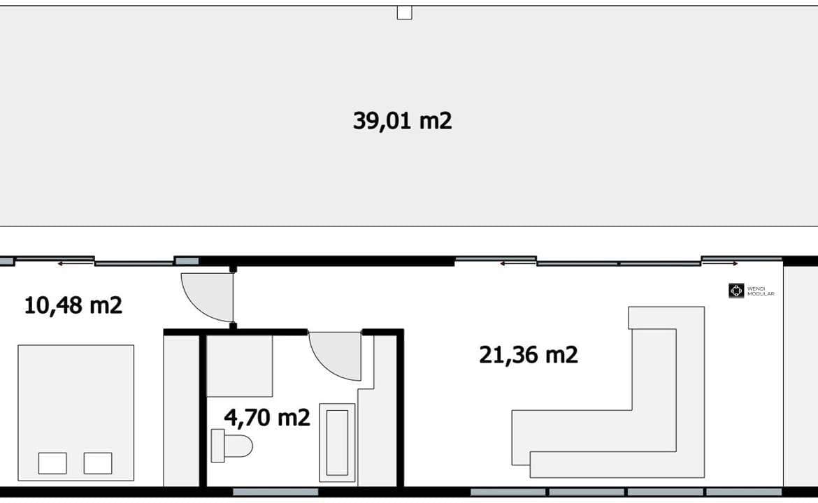 Summer House er et modulhus bygget av Wendi Modular, en ferdighusprodusent med base i Latvia. Dette modulhuset har et boareal på 36,54 m² med ett soverom og ett bad.