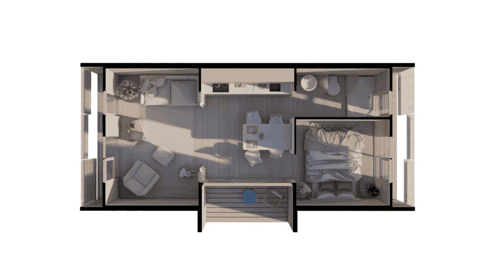 wahbi Standard er en hytte bygget av Woodville, en prefabprodusent med base i Spania. Denne hytta har et boareal på 34,1 m² med plass til opptil fire personer.