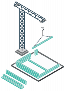 This type of prefabrication technique refers to construction made with horizontally positioned logs with round or squared sections, interlocked at corners by notching. Traditionally, this type of building system has been used in regions with tall coniferous trees, which are used as raw material. Because of the evolving techniques of offsite manufacturing, log houses can be entirely prefabricated and then transported to the construction site as a ready-to-assemble kit.