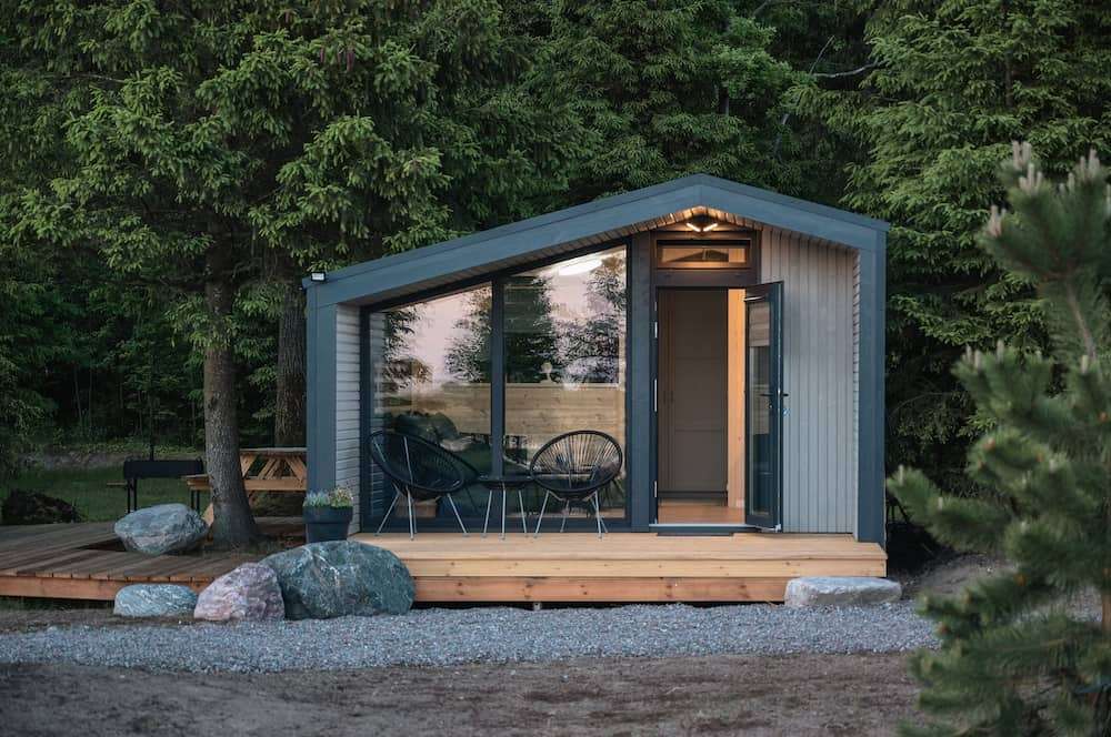 Med ett pris på endast 33 000 euro är denna 20 kvm stora prefabricerade studio perfekt för en mängd olika användningsområden, oavsett om det är som gästhus, hemmakontor eller ett lugnt trädgårdsrum.