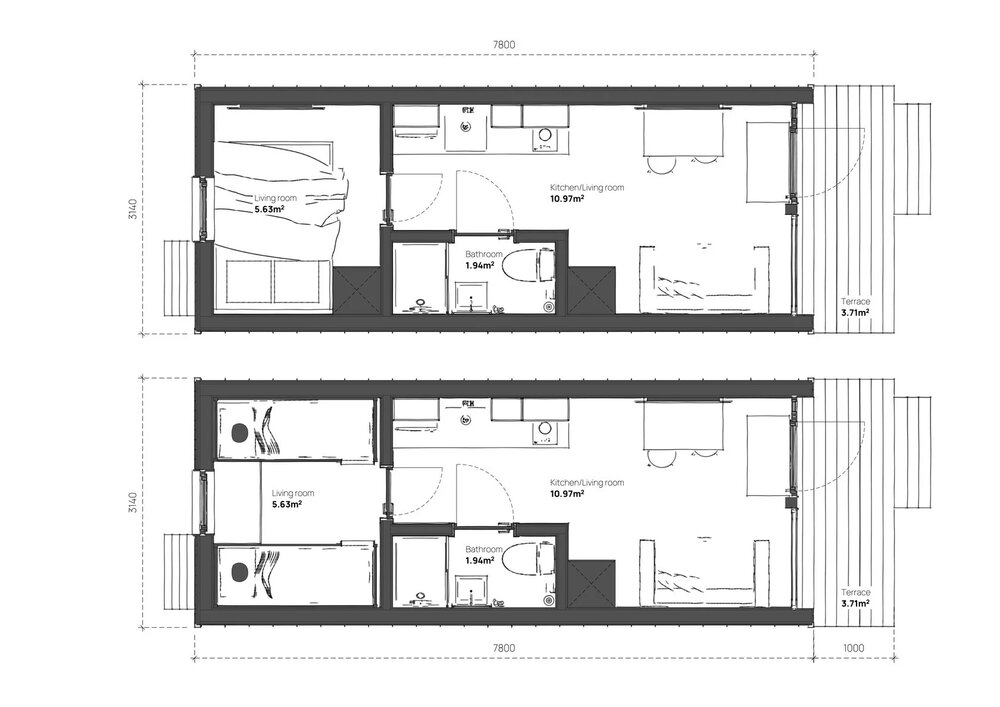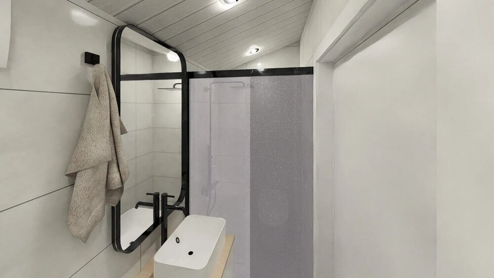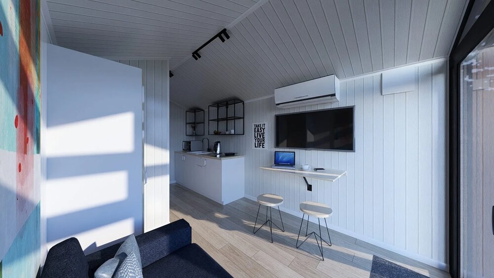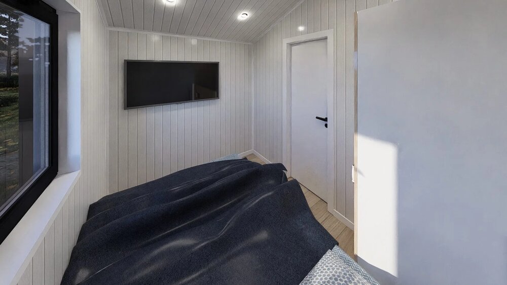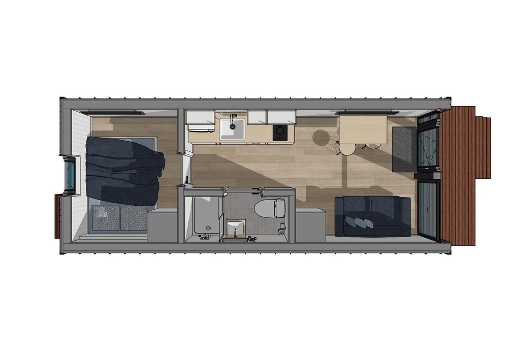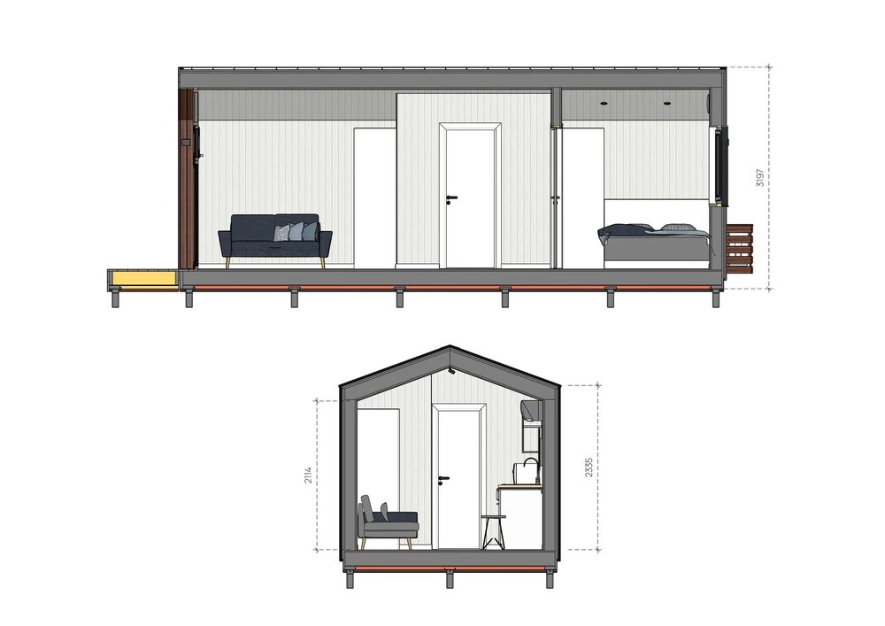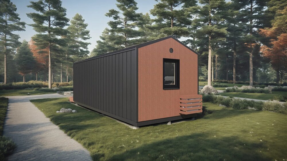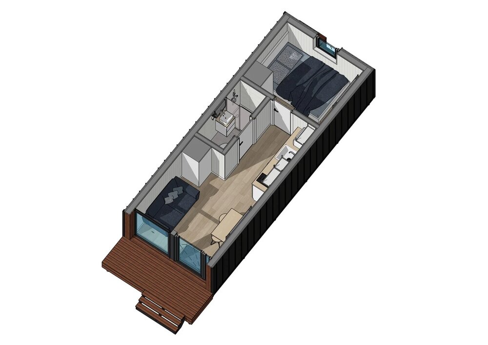 Detta prefabricerade hus erbjuder 25 m² boyta, med 1 sovrum och 1 badrum.