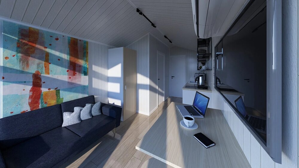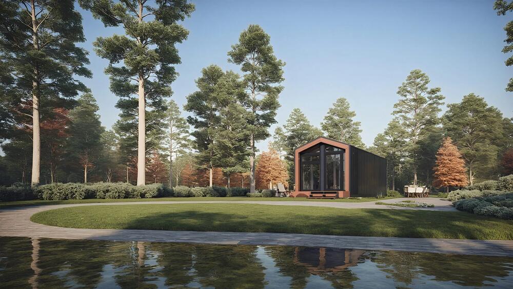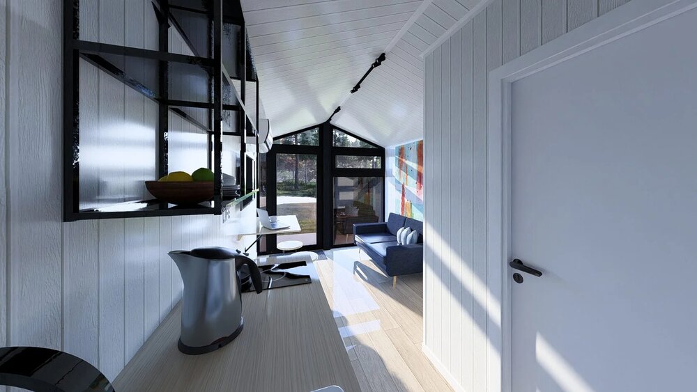 Omberg 25 är en modulär prefab byggd av Aiger House, en prefabtillverkare baserad i Polen.