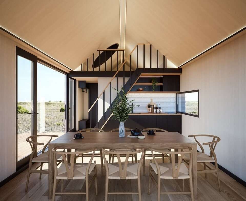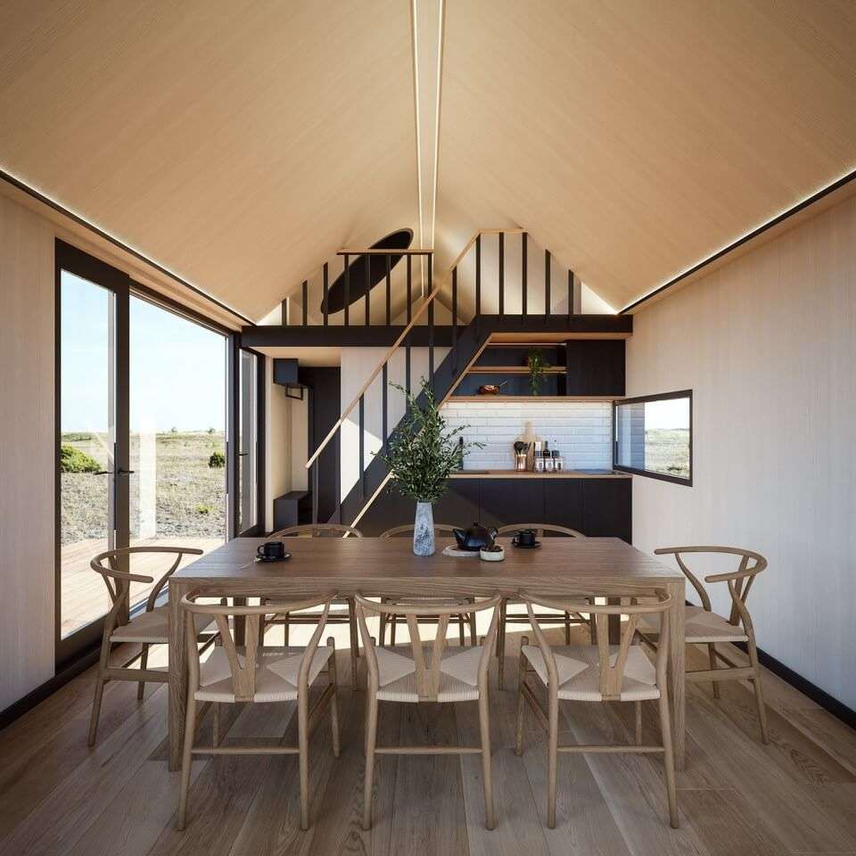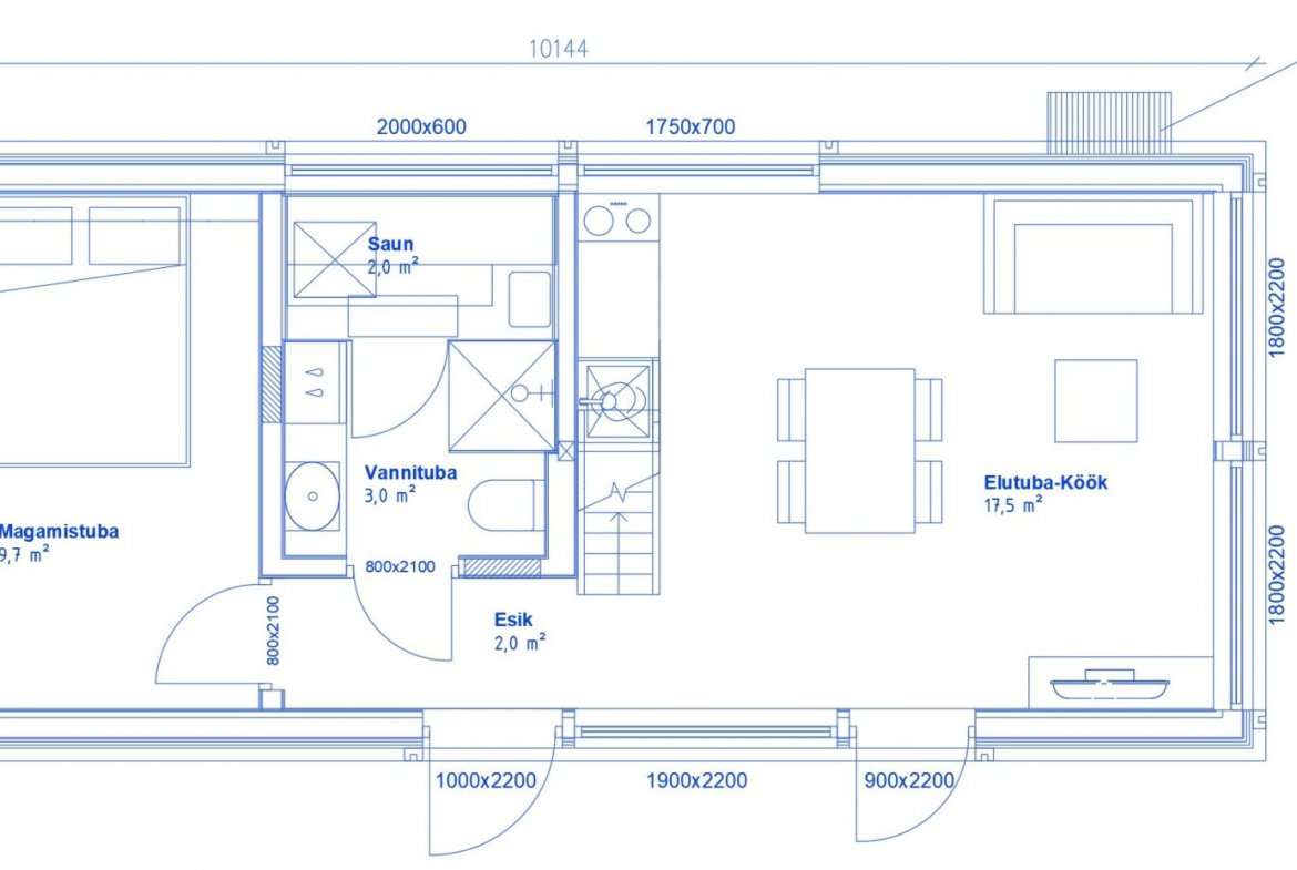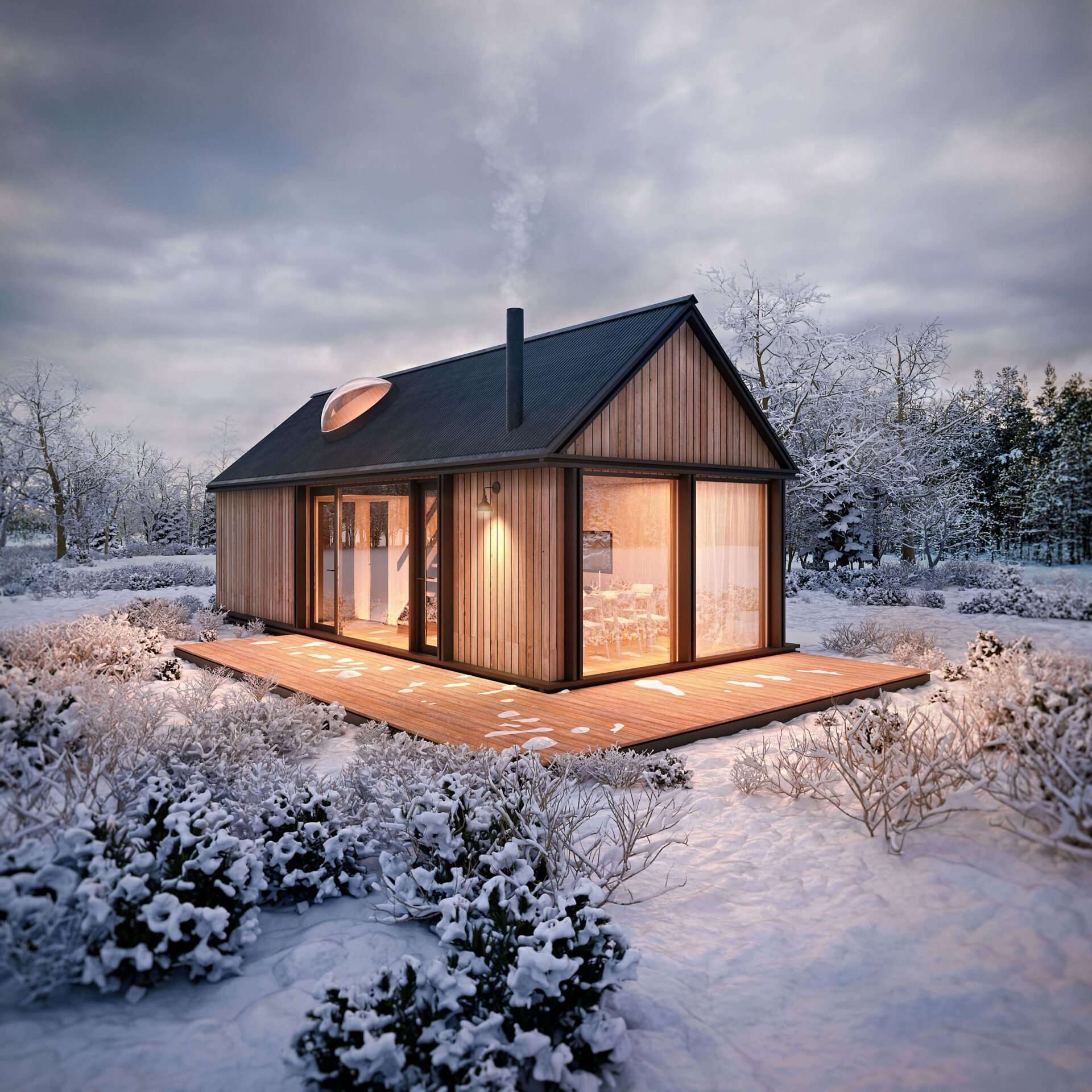 Muhu är ett modulhus byggt av Akso-Haus, en prefabtillverkare baserad i Estland. Detta modulhus erbjuder 34,2 m² boyta med ett sovrum och ett badrum.