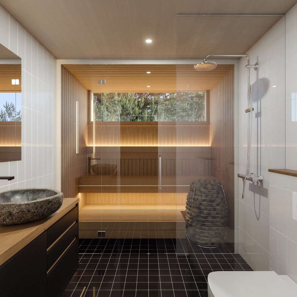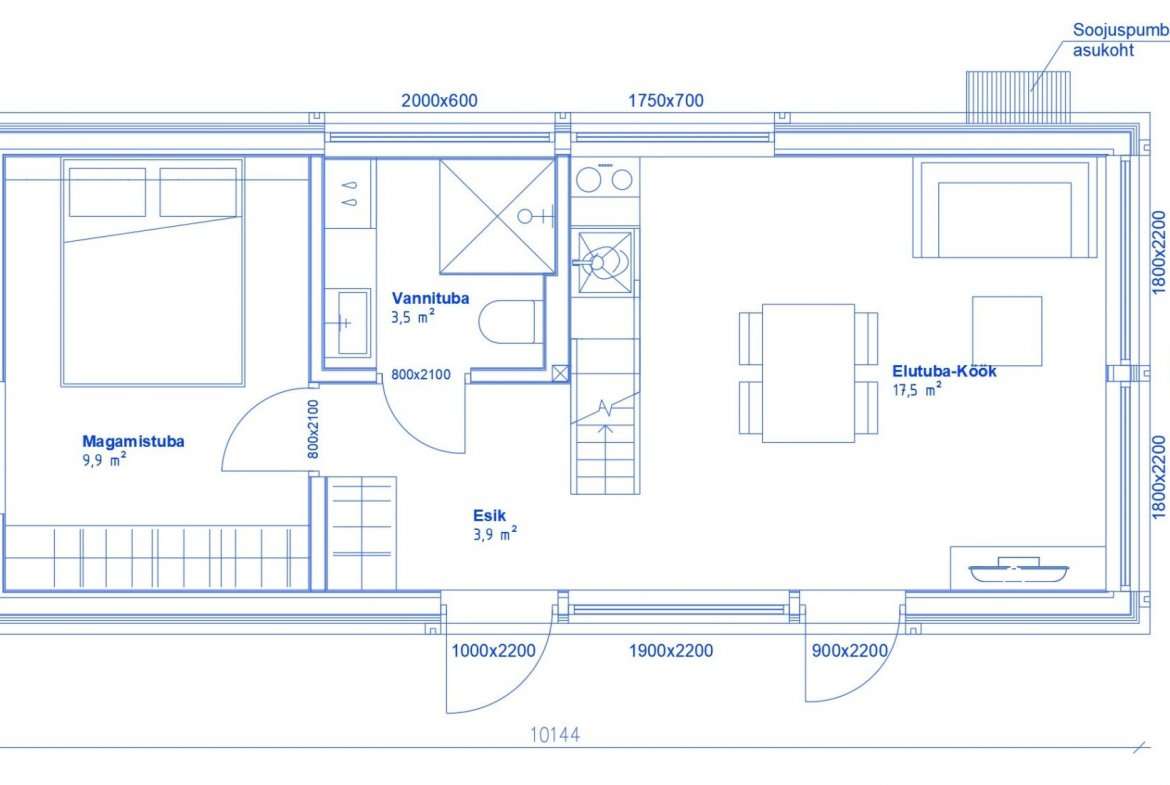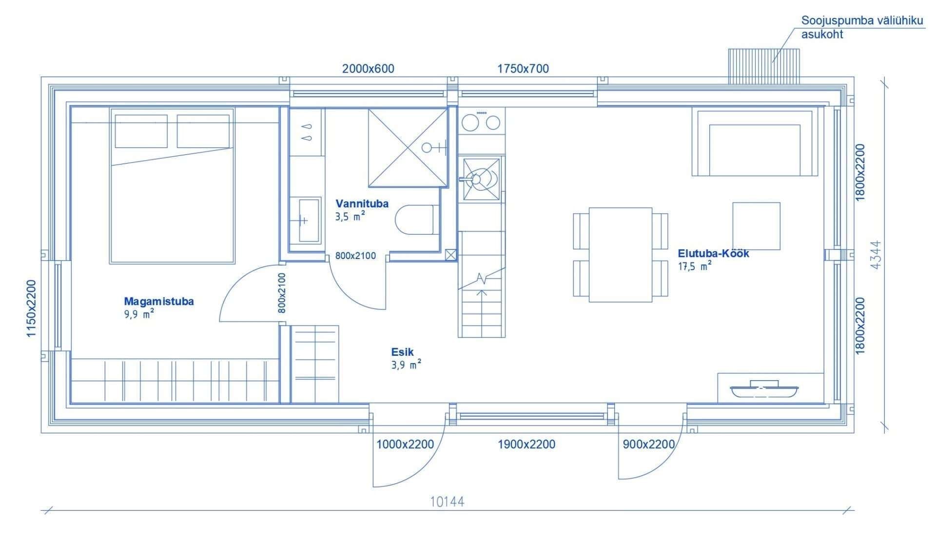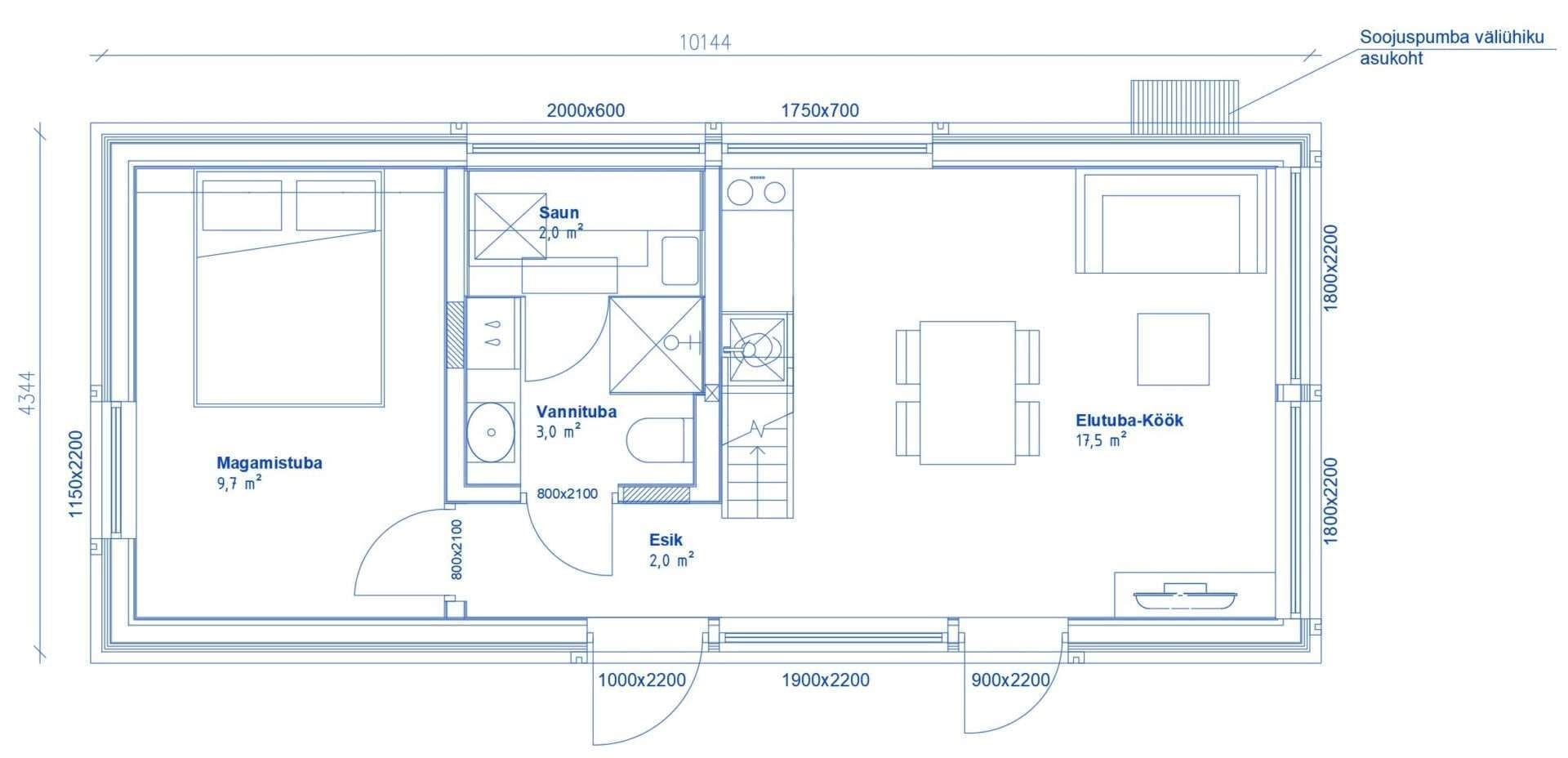 Muhu är ett modulhus byggt av Akso-Haus, en prefabtillverkare baserad i Estland. Detta modulhus erbjuder 34,2 m² boyta med ett sovrum och ett badrum.