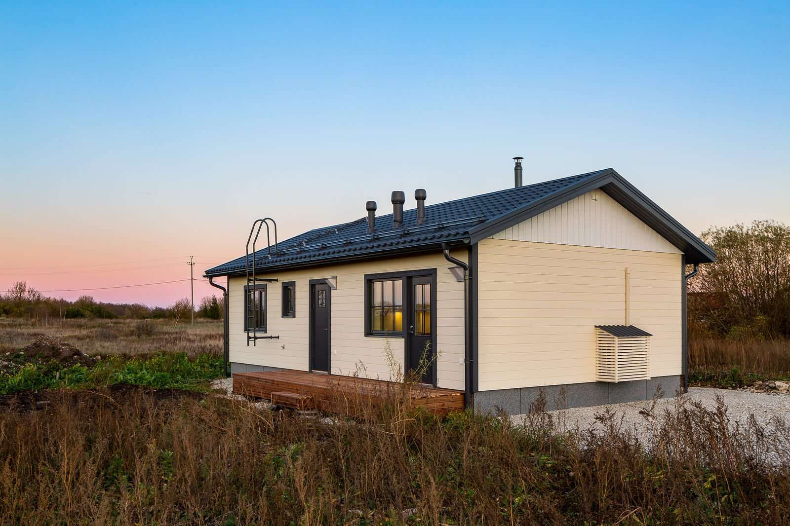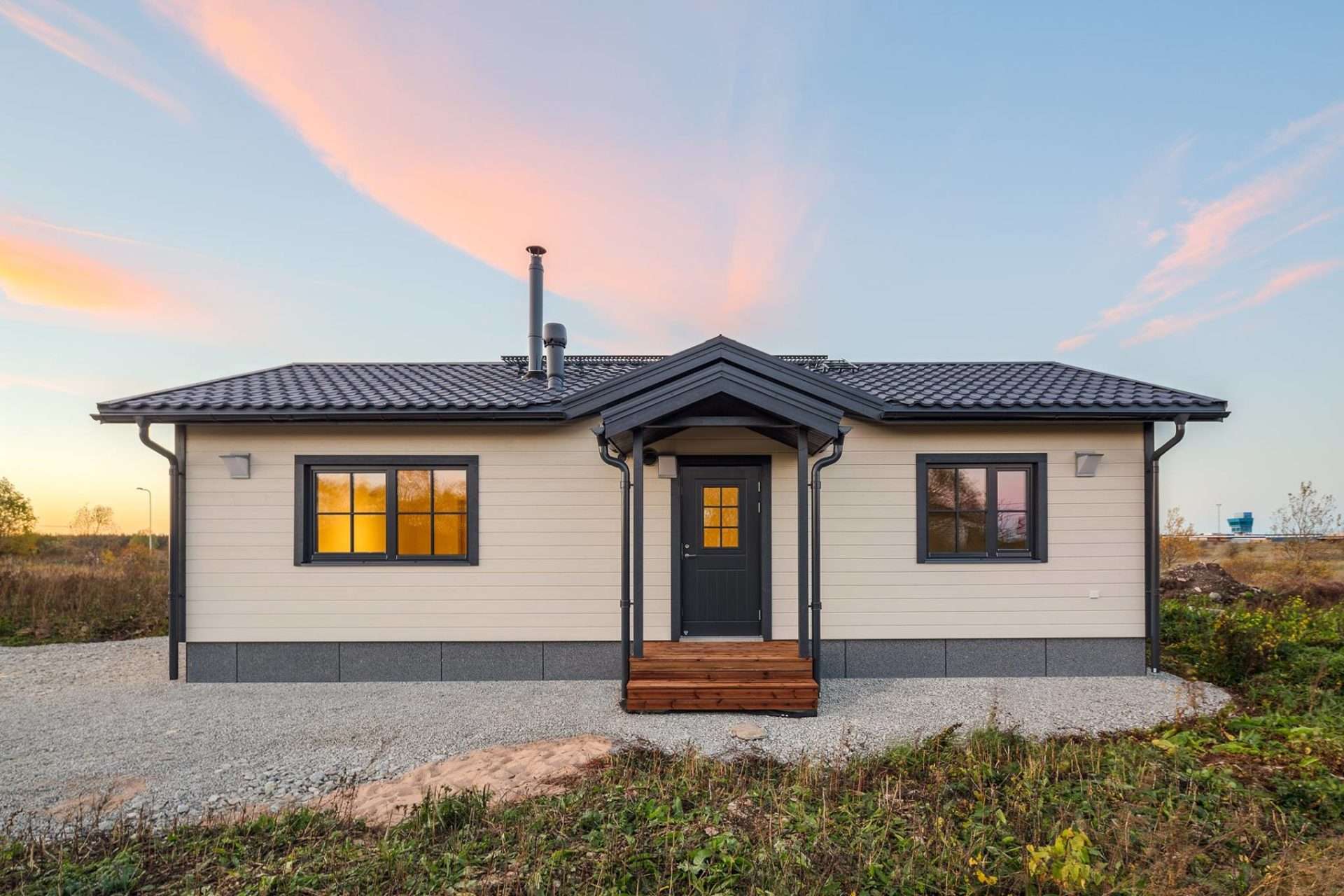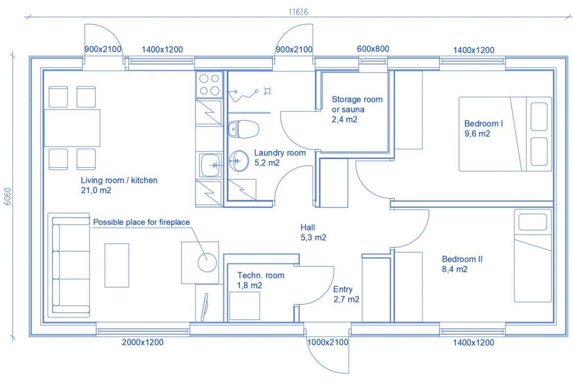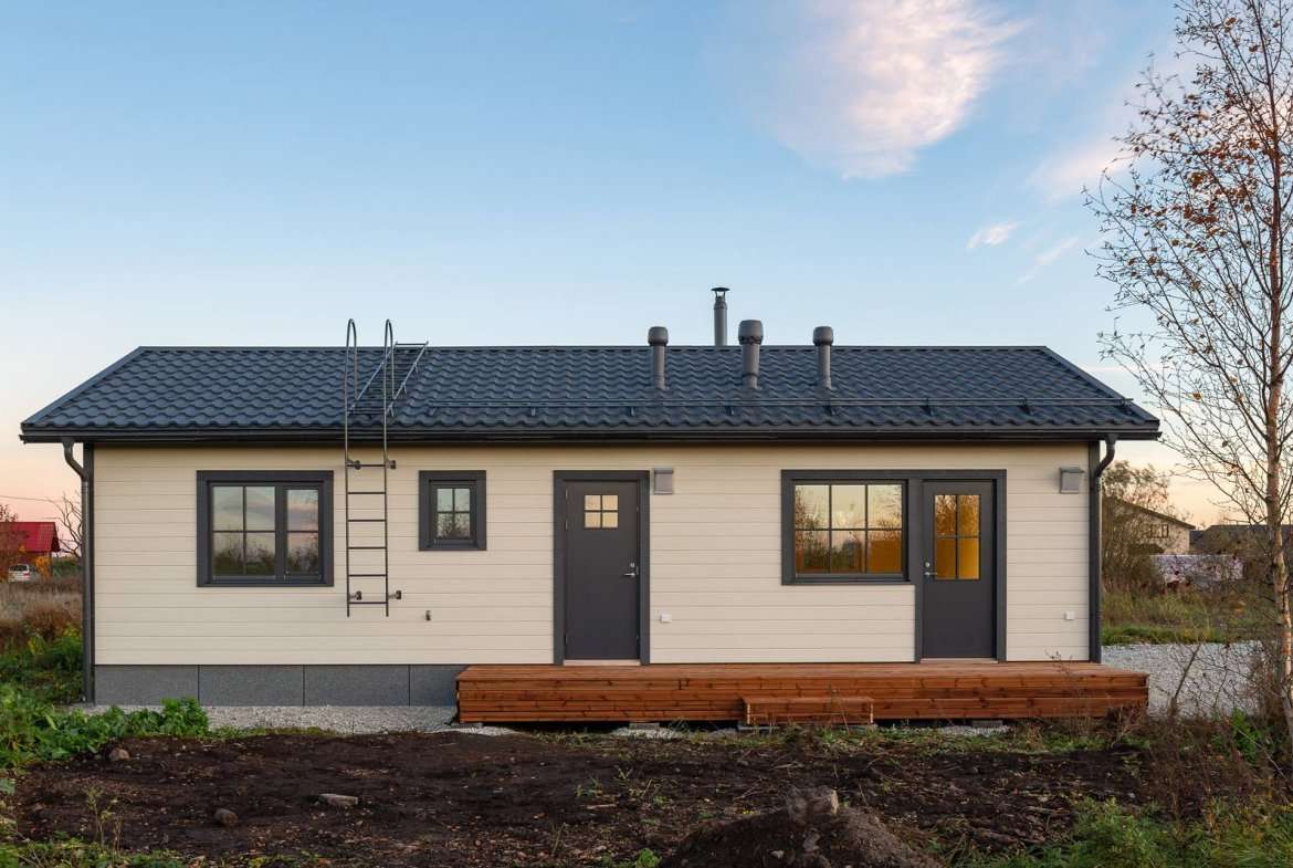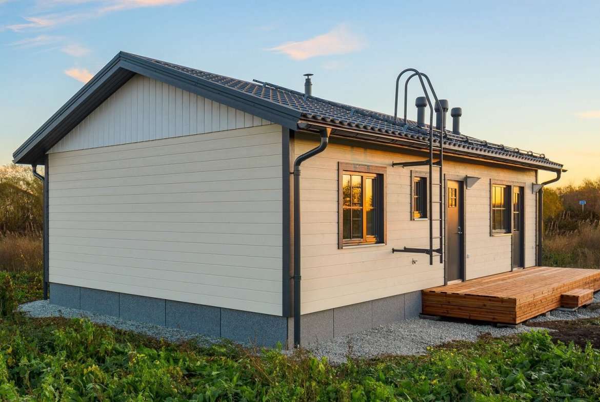 Teele 1-70 är ett Modulhus byggt av Akso-Haus, en prefabtillverkare baserad i Estland. Detta modulhus erbjuder 56,6 m² boyta med två sovrum och ett badrum.