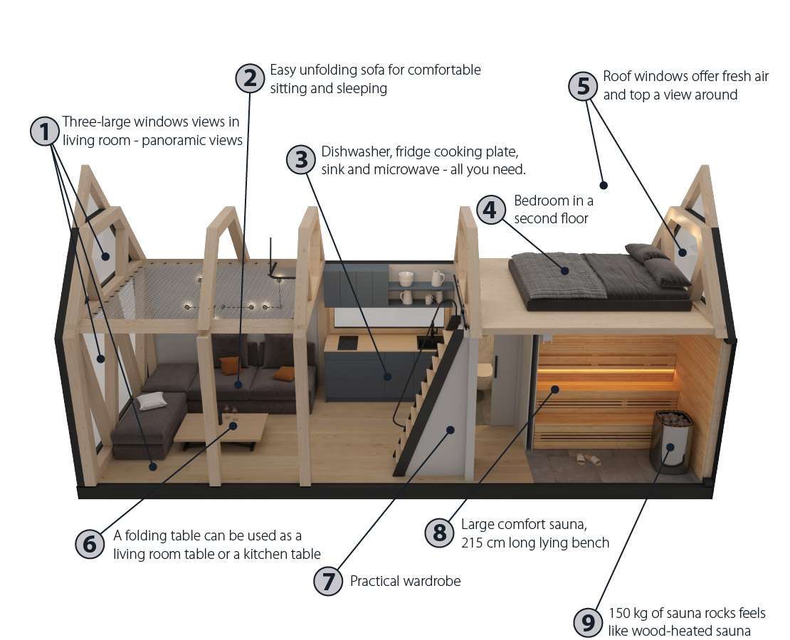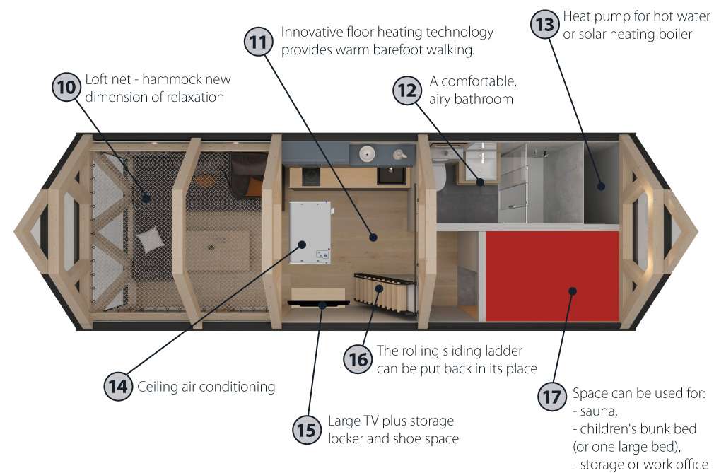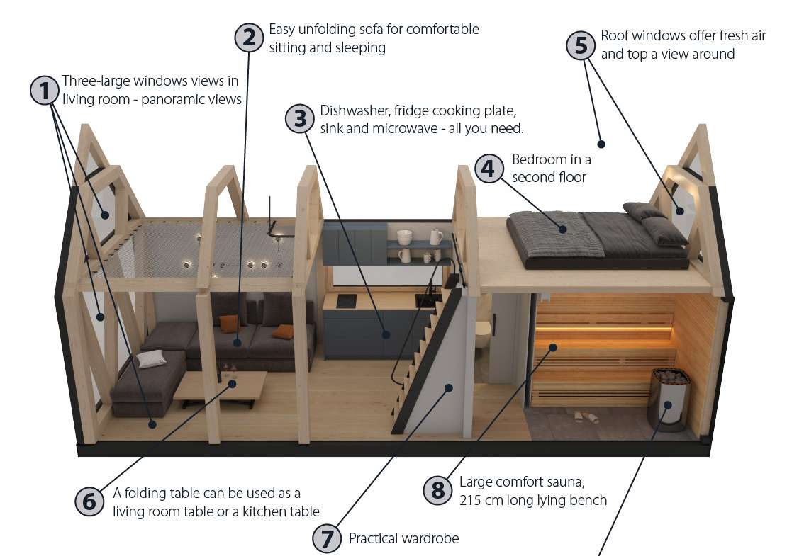 Julia är ett modulhus byggt av BIGHEAD, en prefabtillverkare baserad i Slovenien. Detta prefabricerade hus erbjuder 26m² boyta, med 2 sovrum och 1 badrum.