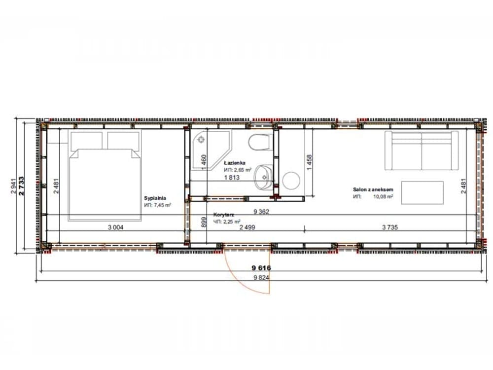 Cube28 är ett modulärt prefabricerat hus byggt av DomiHaus, en prefabricerad tillverkare baserad i Polen. Detta prefabricerade hus har en användbar yta på 22,43 m², med 1 sovrum och 1 badrum.