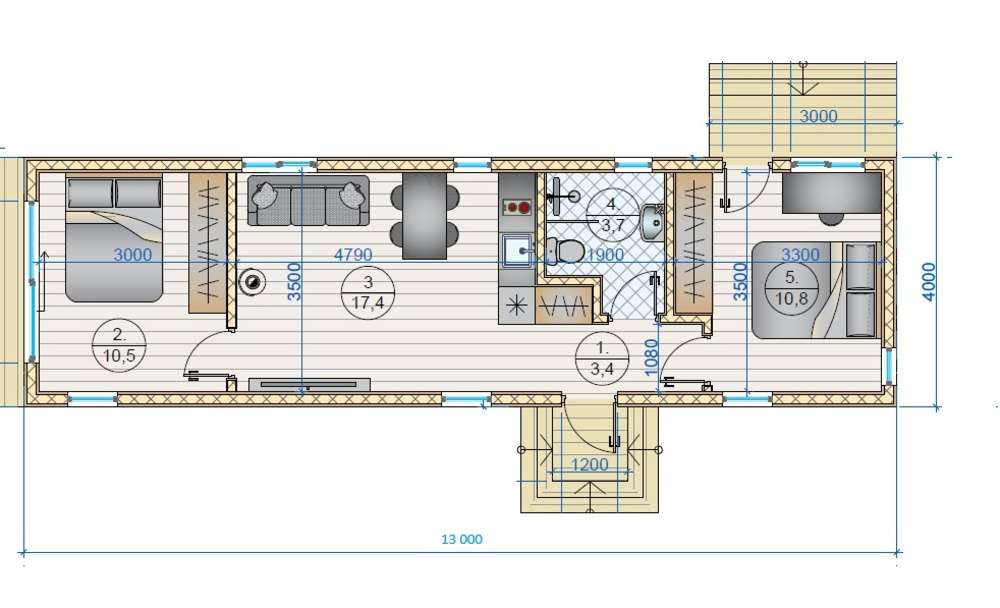 Ecospace 52 är ett modulhus byggt av EcoSpace, en prefabtillverkare baserad i Lettland. Detta prefabricerade hus erbjuder 52 m² bostadsyta, med 2 sovrum och 1 badrum.