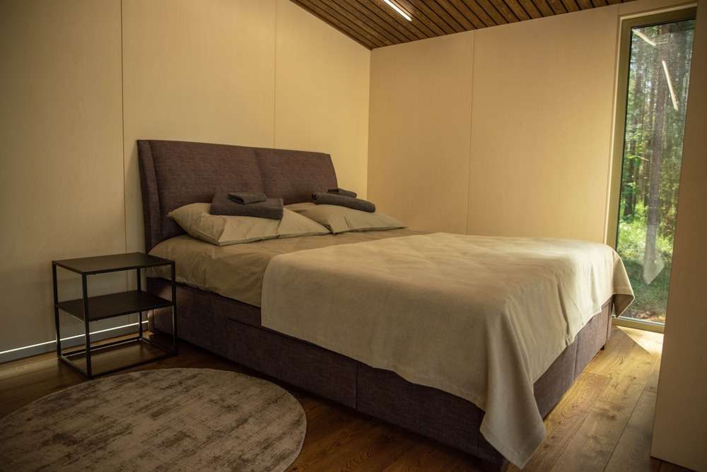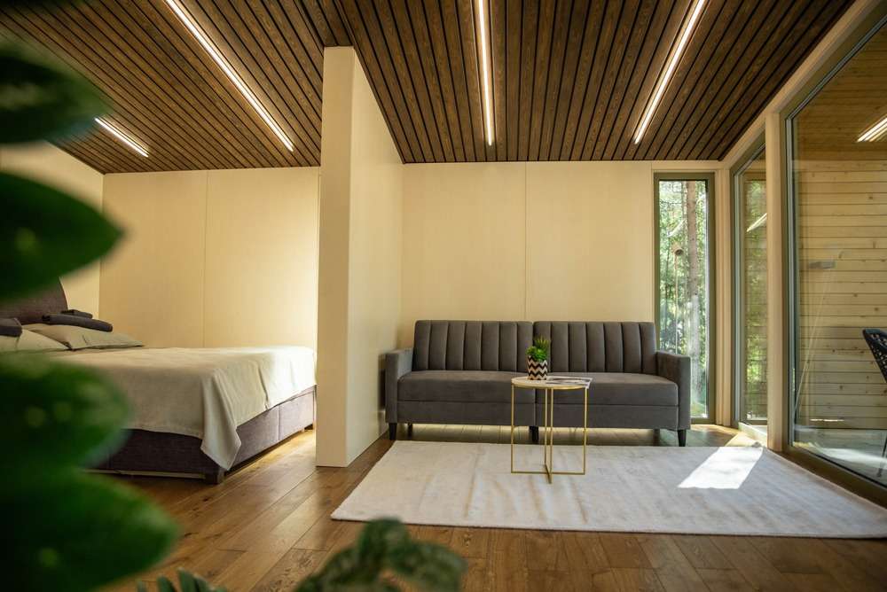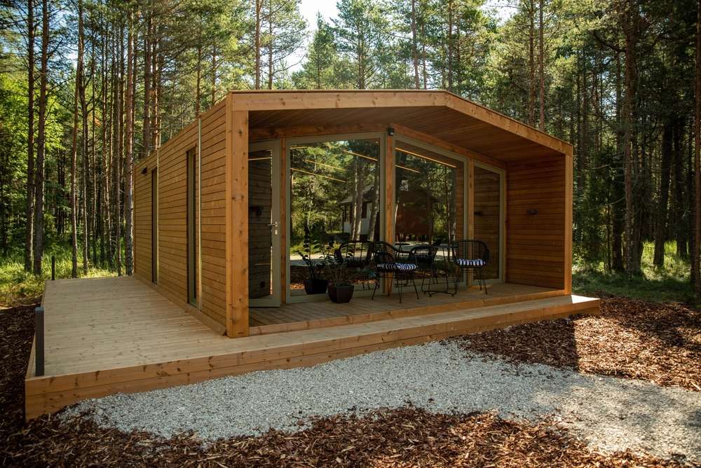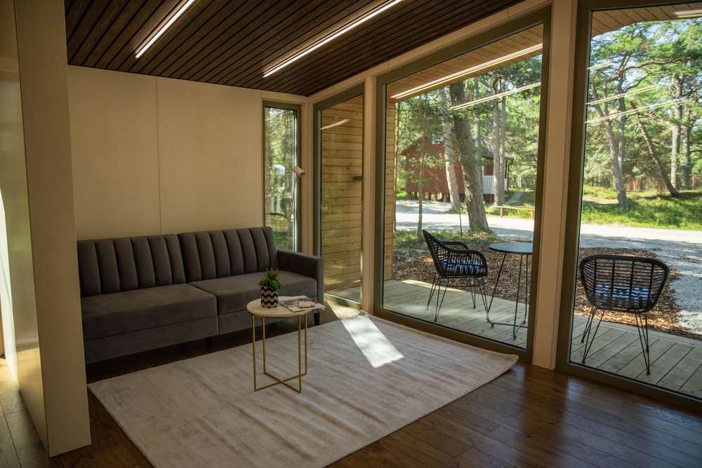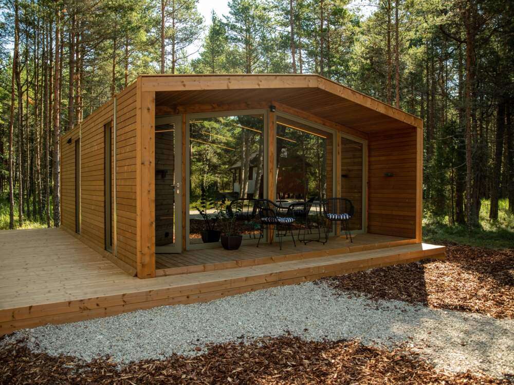 Olivia XXL är en modulär stuga byggd av HUT, en prefabtillverkare baserad i Estland. Denna modulära stuga har en boyta på 32,8 m² och rymmer två personer.