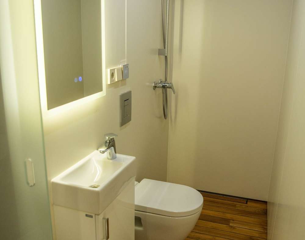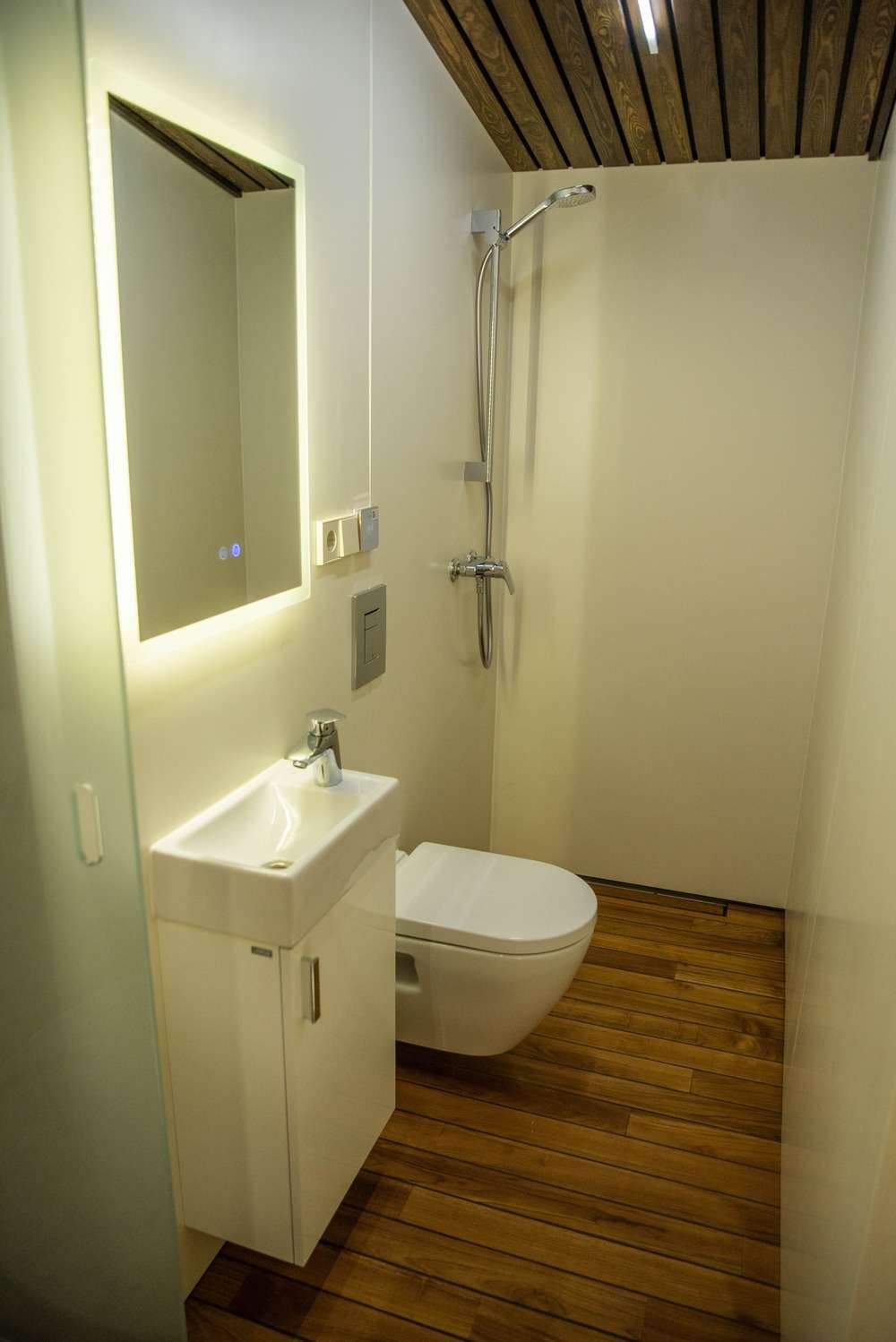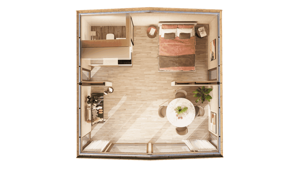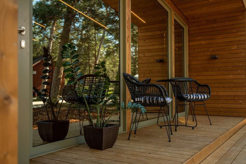 Olivia XXL är en modulär stuga byggd av HUT, en prefabtillverkare baserad i Estland. Denna modulära stuga har en boyta på 32,8 m² och rymmer två personer.