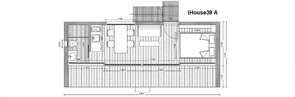 iHouse39 A är en modulär stuga byggd av iHouse, en prefabtillverkare baserad i Grekland. Denna stuga har en boyta på 39 m² som rymmer 2 personer.