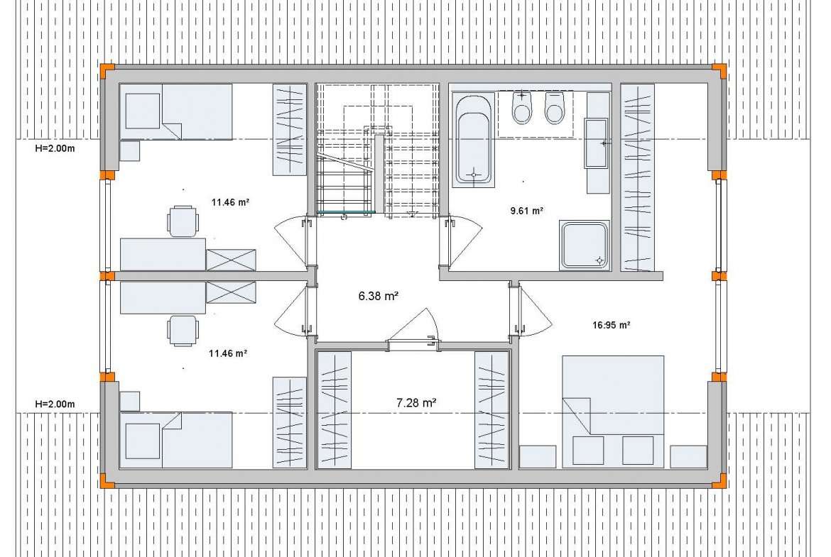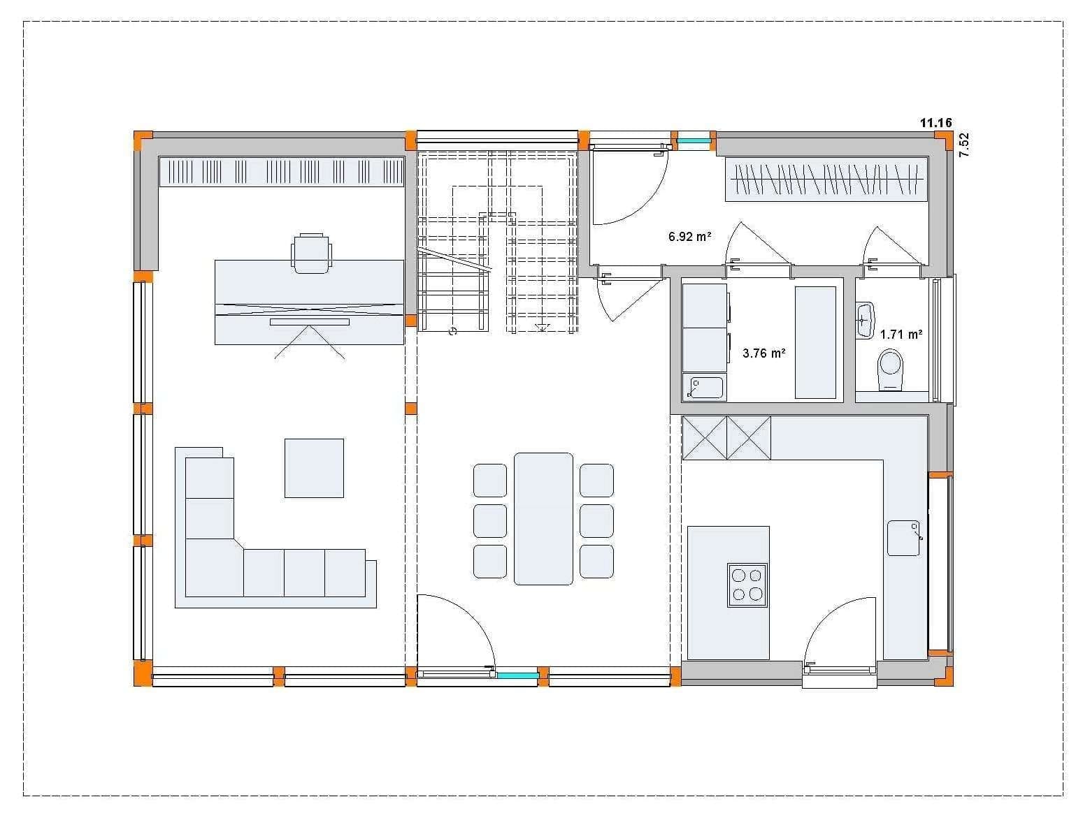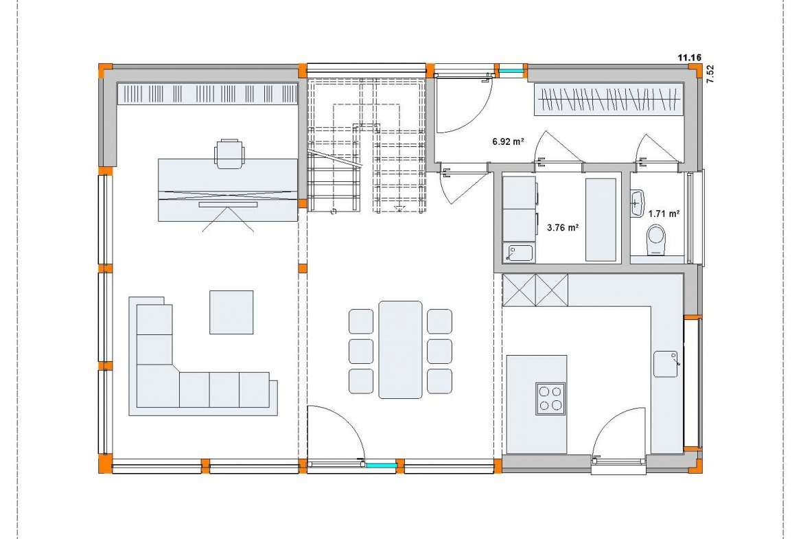 Vita Nova Classic 134 V1 är ett Elementhus byggt av KAGER, en prefabtillverkare baserad i Slovenien. Detta Elementhus har 134 m² boyta fördelat på två våningar, med tre sovrum och ett badrum.