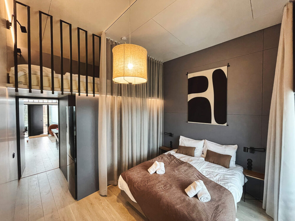 KODA Loft Extended är en flyttbar prefab med trästomme som byggts av Kodasema, en prefabtillverkare baserad i Estland. Detta prefabricerade hus erbjuder 45,8 kvm användbar boyta, med 1 sovrum och 1 badrum.