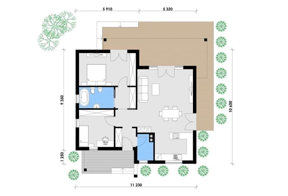 Prefabricated House 105 är ett Elementhus byggt av Norges Hus, en tillverkare av prefabricerade hus i Estland. Detta Elementhus erbjuder 105 m² bostadsyta med 2 sovrum och 1 badrum.