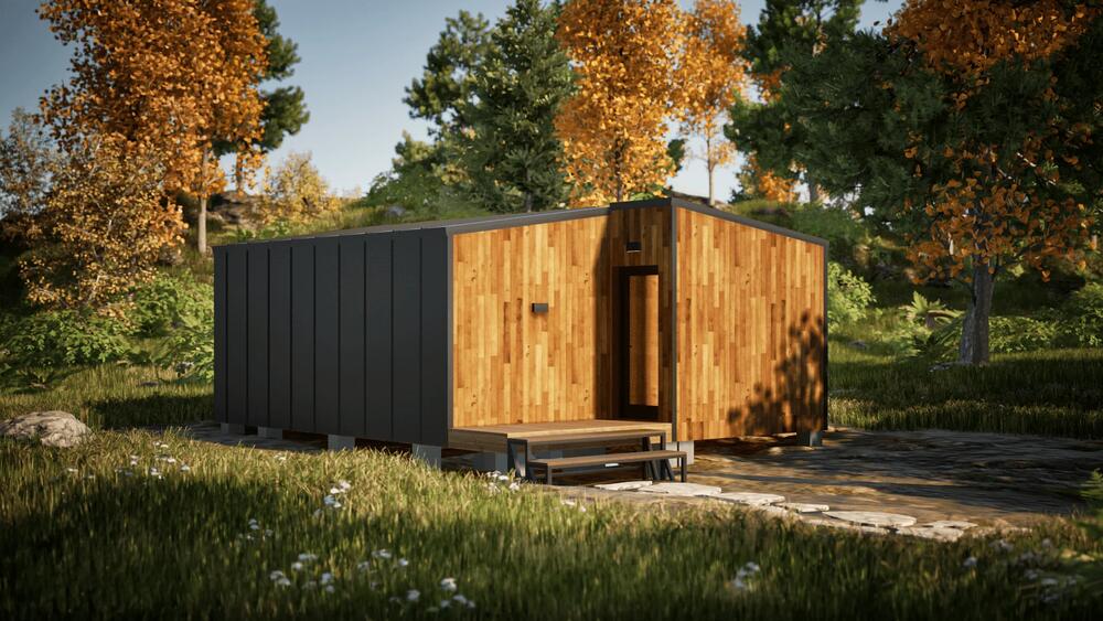 Detta prefabricerade hus erbjuder 44 m² boyta, med 1 sovrum och 1 badrum.