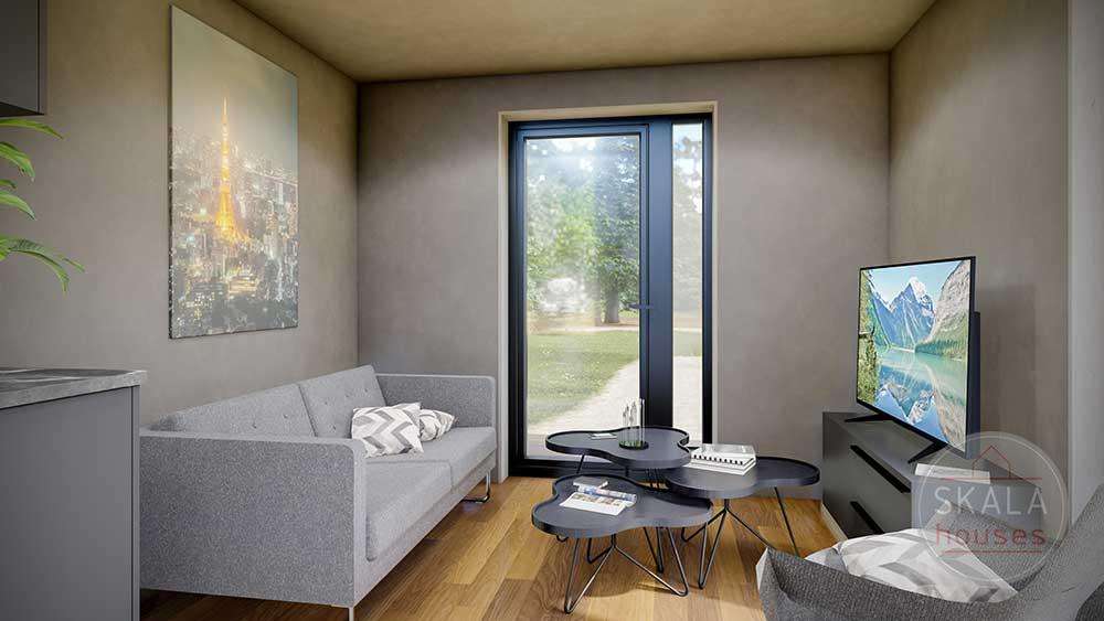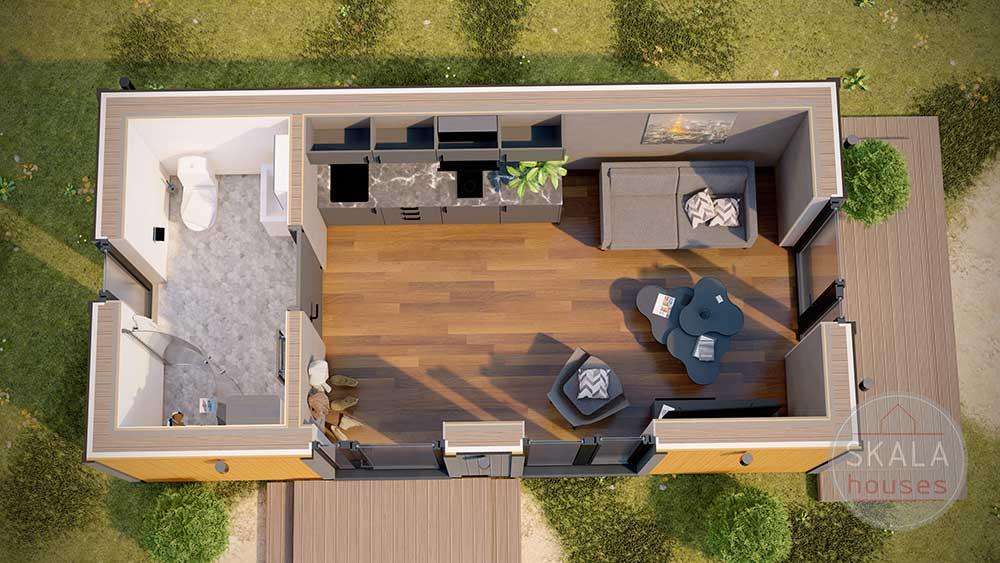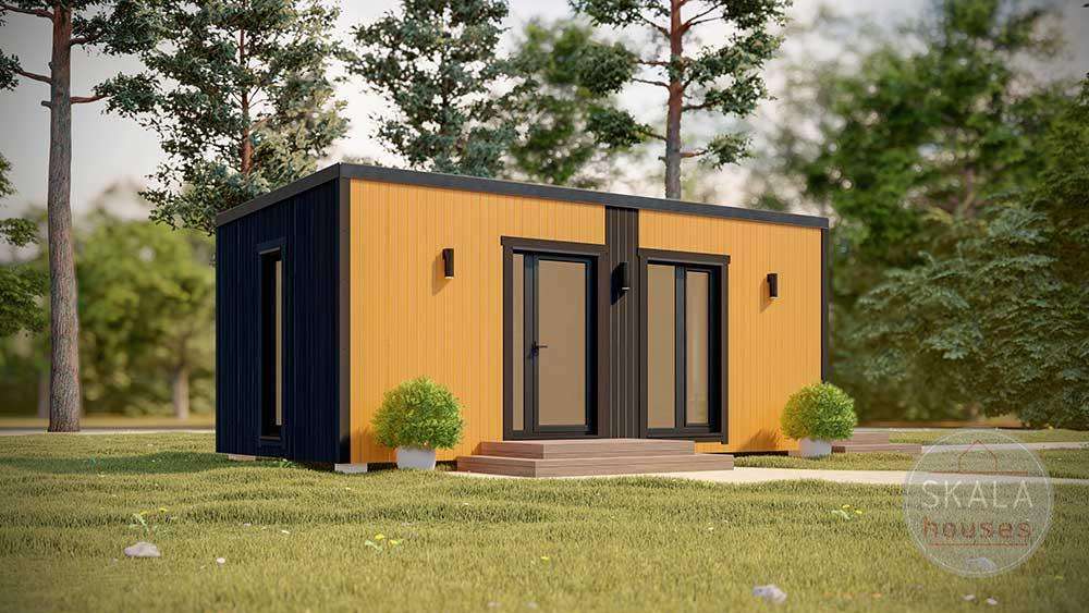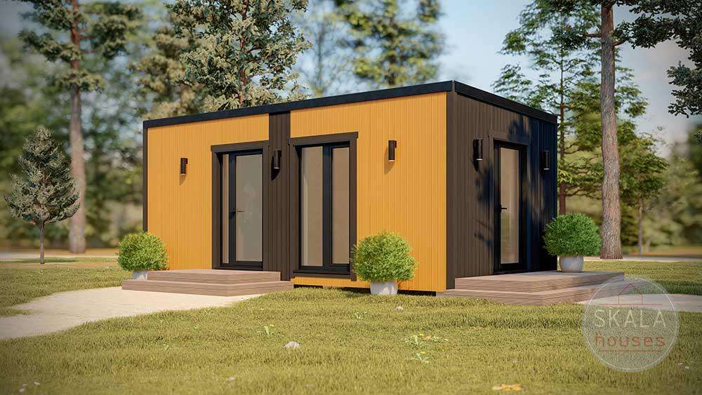 Malda är ett modulhus byggt av Skala Houses, en prefabtillverkare baserad i Lettland. Detta prefabricerade hus erbjuder 25 m² boyta, med 2 sovrum och 1 badrum.