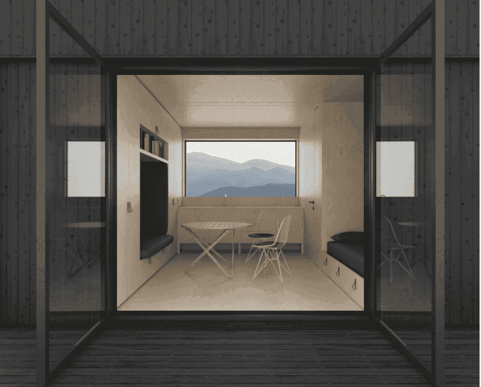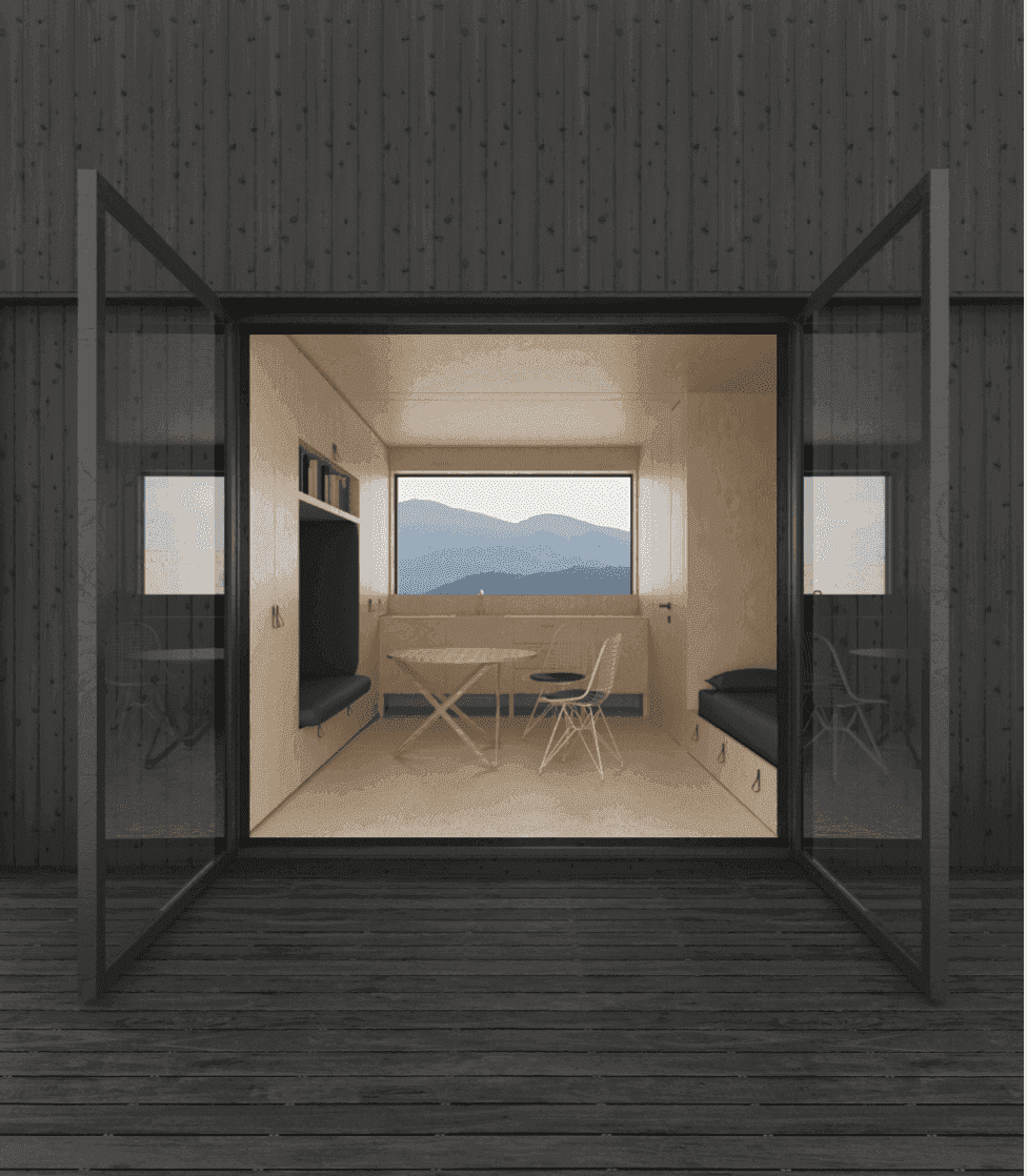 Micro 18 Light är en stuga byggd av Strato HOMES, en prefabtillverkare baserad i Litauen. Denna stuga har en boyta på 17,8 m² och rymmer två personer.
