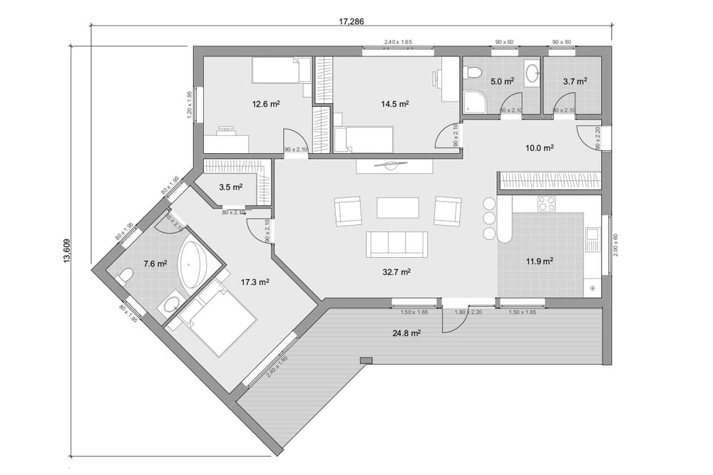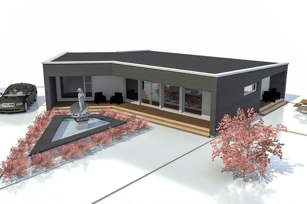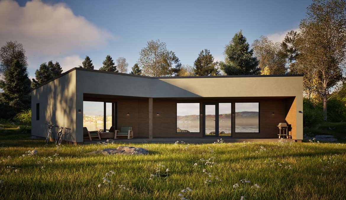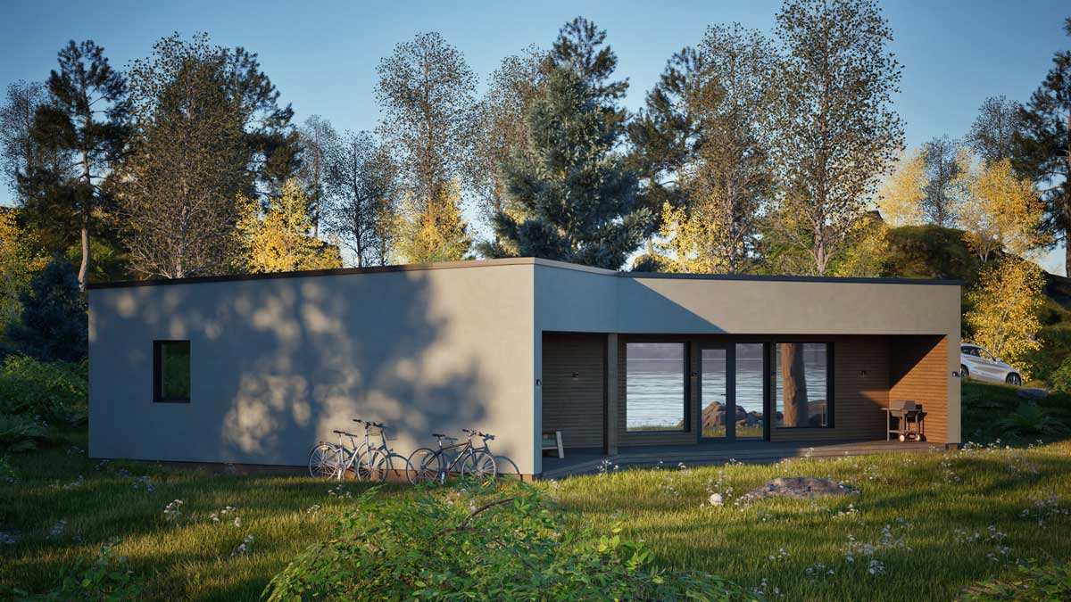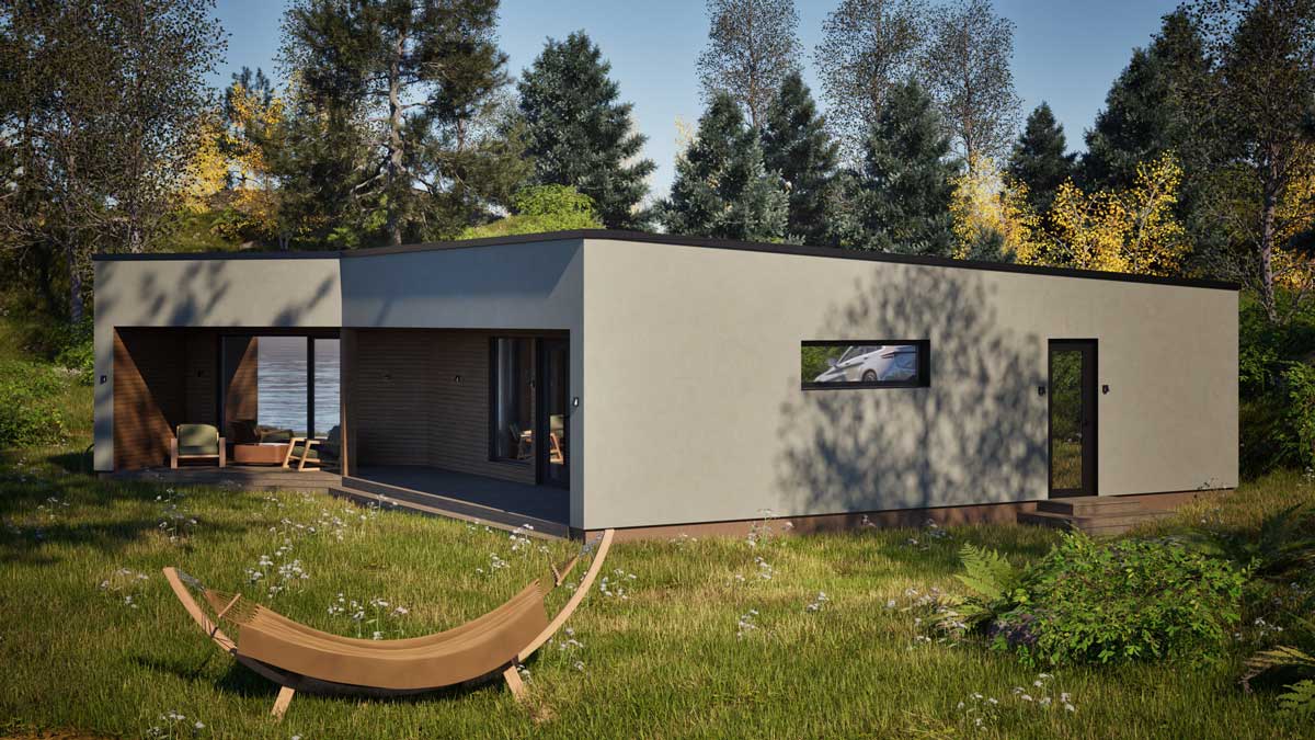 Dara 118 är ett prefabricerat hus med träram som byggts av Vitbuve, en tillverkare av prefabricerade hus i Lettland. Detta prefabricerade hus erbjuder 118,8 m2 boyta, med 3 sovrum och 2 badrum.